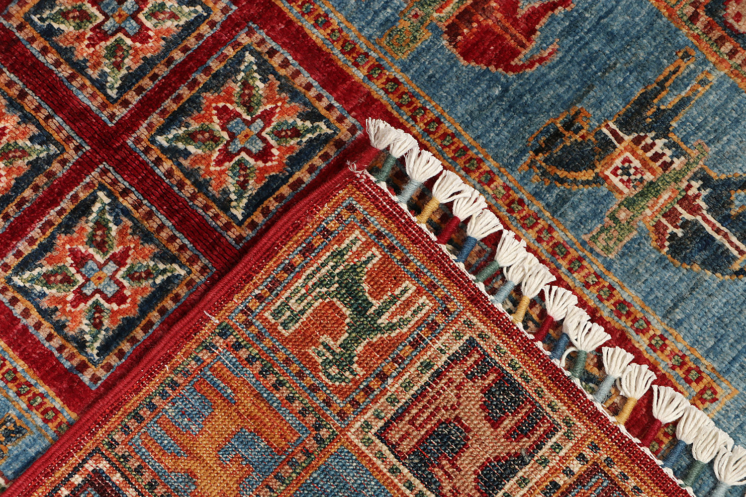 What makes Khurjeen rugs different from the rest is their diversified designs and patterns. The designs draw inspiration from saddlebag designs. These handwoven masterpieces feature rich, multicolored patterns that burst with energy and charm. Pure wool yarns are dyed naturally with cochineal and indigo. Each rug combines durability with stunning detail.