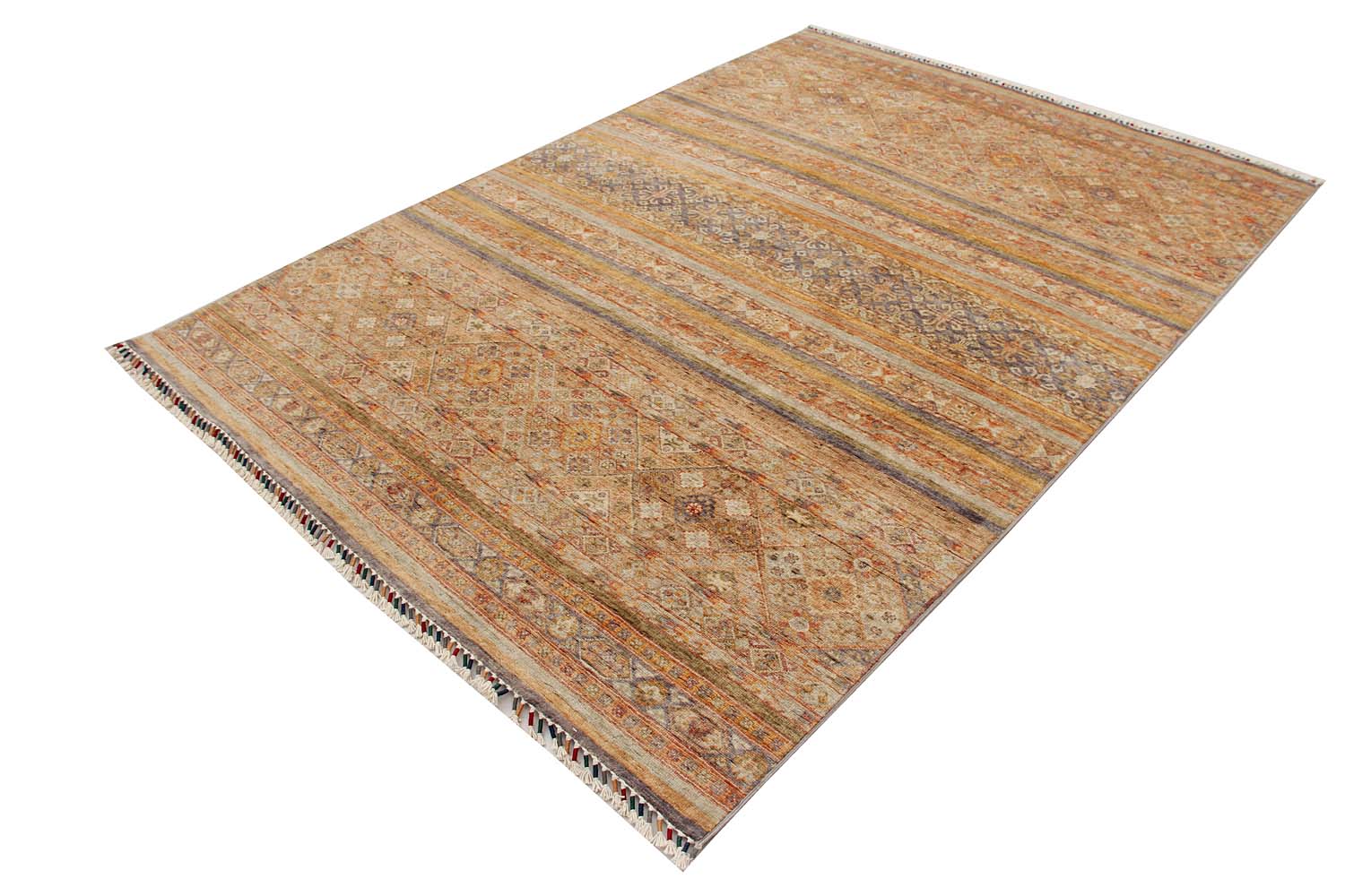 What makes Khurjeen rugs different from the rest is their diversified designs and patterns. The designs draw inspiration from saddlebag designs. These handwoven masterpieces feature rich, multicolored patterns that burst with energy and charm. Pure wool yarns are dyed naturally with cochineal and indigo. Each rug combines durability with stunning detail.