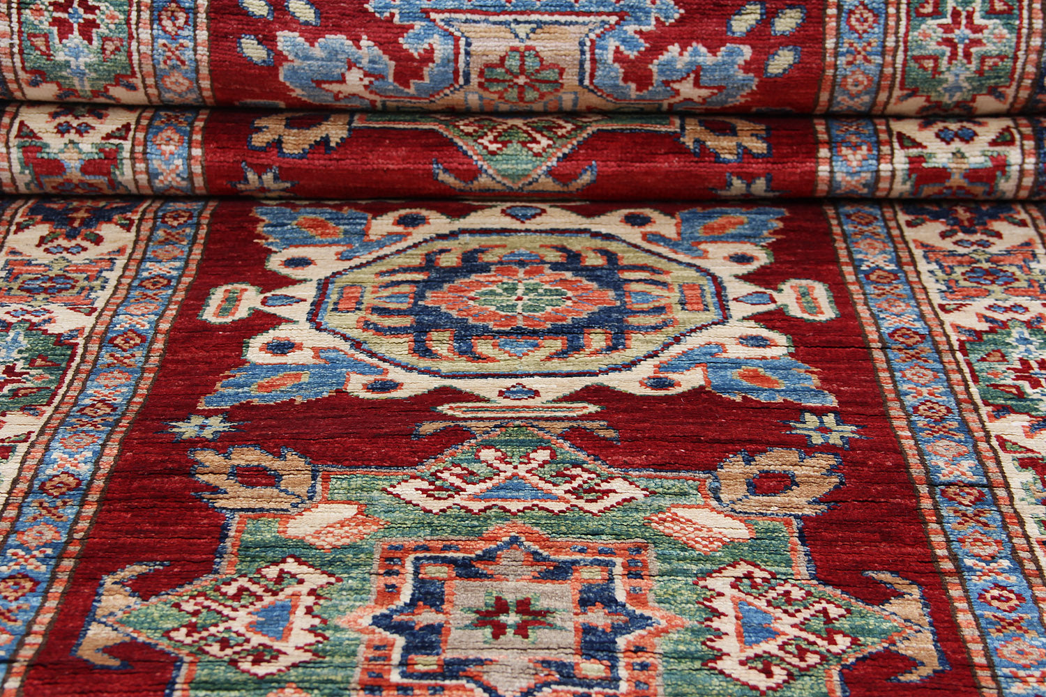 The Supreme Kazak Rug elevates tradition to a whole new level with its rich, intricate patterns and superior craftsmanship. Handwoven with the finest wool and dyed with natural, earthy hues, it exudes timeless elegance and unmatched quality. Its bold geometric designs and striking colors make a powerful statement in any space, while its durability ensures it will stand the test of time.