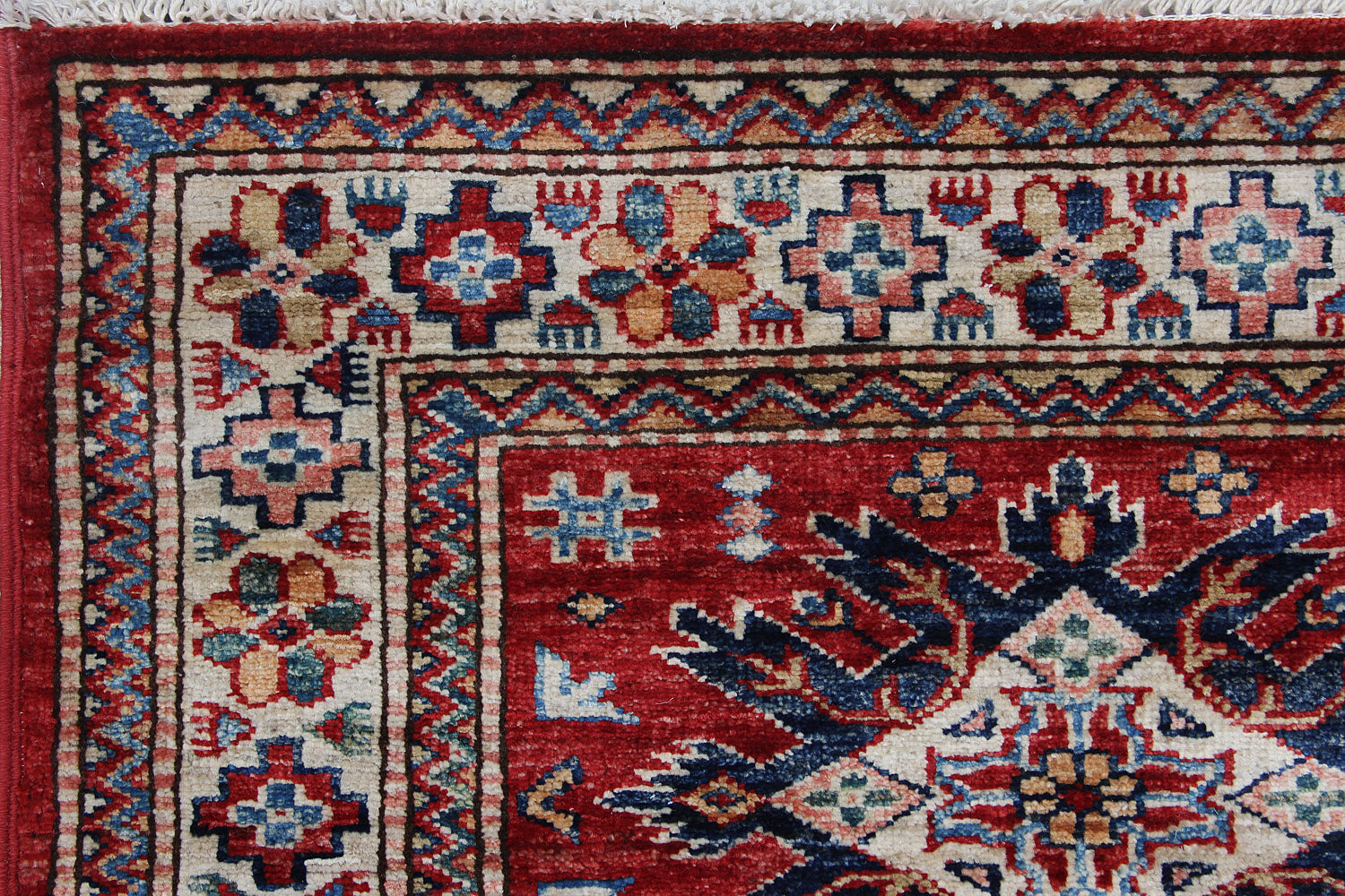 The Supreme Kazak Rug elevates tradition to a whole new level with its rich, intricate patterns and superior craftsmanship. Handwoven with the finest wool and dyed with natural, earthy hues, it exudes timeless elegance and unmatched quality. Its bold geometric designs and striking colors make a powerful statement in any space, while its durability ensures it will stand the test of time.