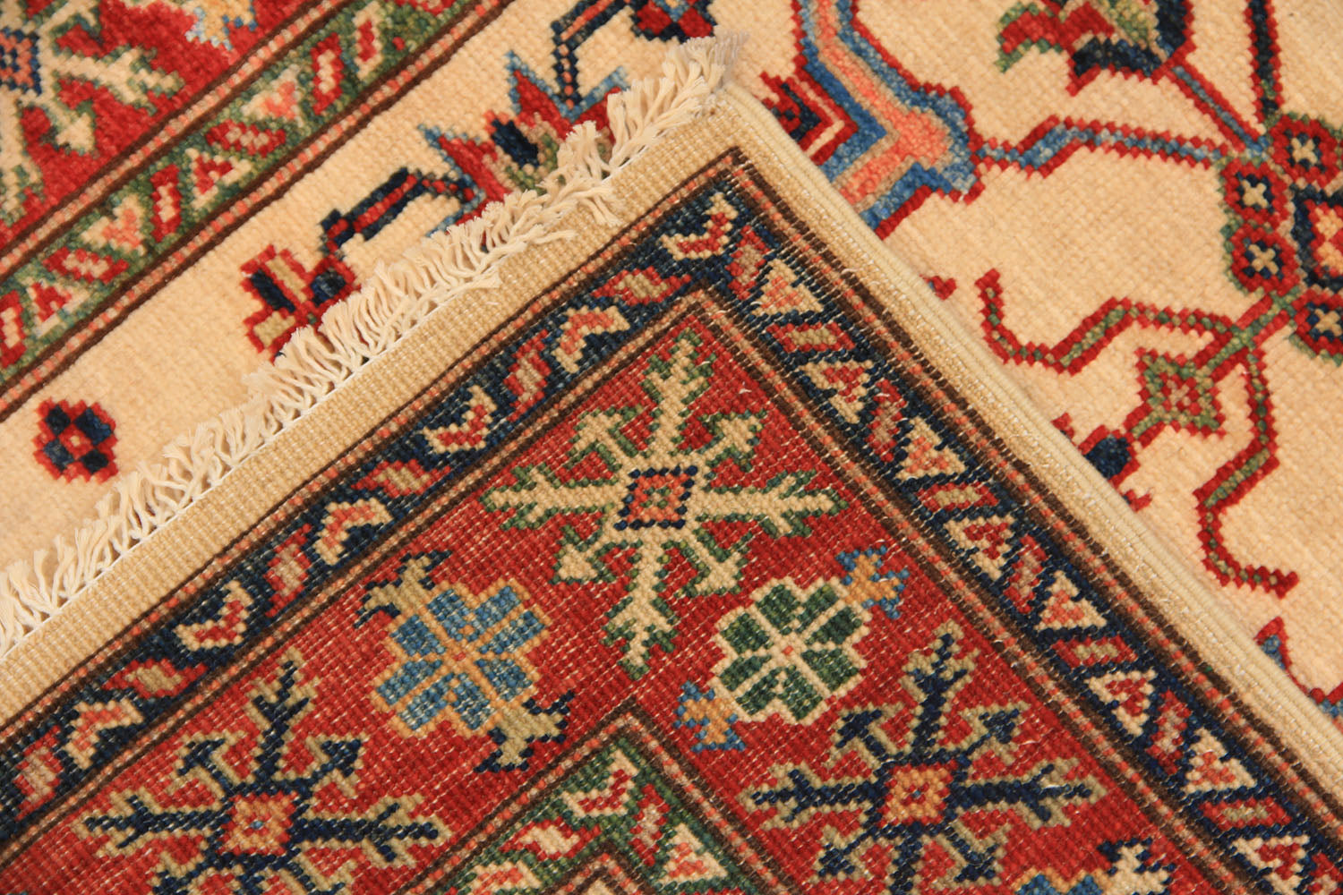 The Supreme Kazak Rug elevates tradition to a whole new level with its rich, intricate patterns and superior craftsmanship. Handwoven with the finest wool and dyed with natural, earthy hues, it exudes timeless elegance and unmatched quality. Its bold geometric designs and striking colors make a powerful statement in any space, while its durability ensures it will stand the test of time.