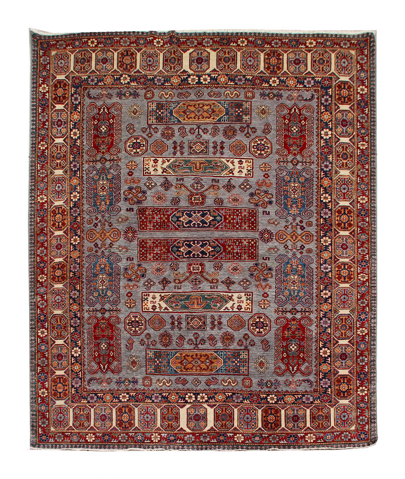 The Supreme Kazak Rug elevates tradition to a whole new level with its rich, intricate patterns and superior craftsmanship. Handwoven with the finest wool and dyed with natural, earthy hues, it exudes timeless elegance and unmatched quality. Its bold geometric designs and striking colors make a powerful statement in any space, while its durability ensures it will stand the test of time.