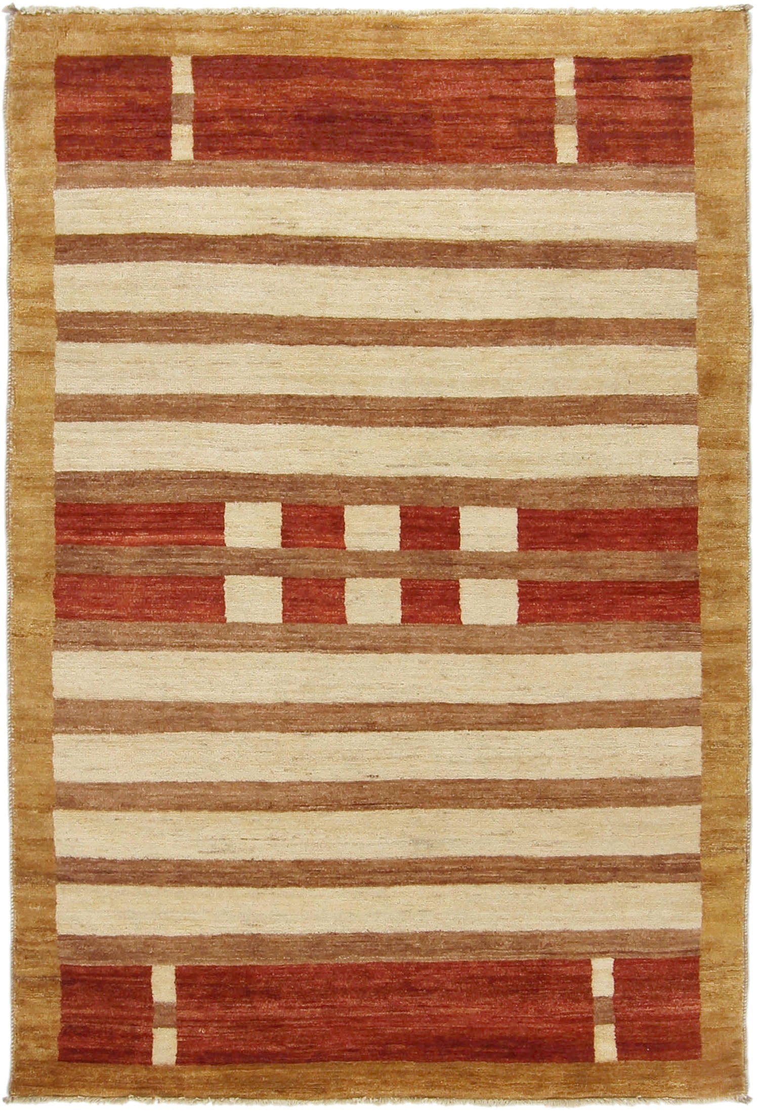 Gabbeh Rugs celebrate simplicity and charm with bold, minimalist patterns and earthy tones. They are hand-knotted with thick, luxurious wool. These rugs hold a prominent place for their soft texture and rustic appeal. Each piece reflects a homely touch, often inspired by nature or tribal life, making every rug truly one to remember for ages.