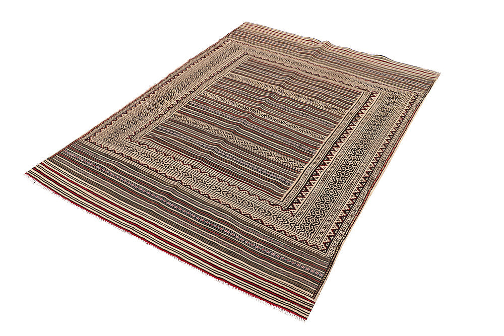 The Laghari Soumak Rug stands out with its unique flat-weave designs and raised embroidery-like patterns. It is woven by skilled hands using locally high-quality sourced wool and natural dyes. It combines durability with striking texture. Unlike traditional pile rugs, the Soumak offers a tapestry-like finish that adds depth and character to any room.