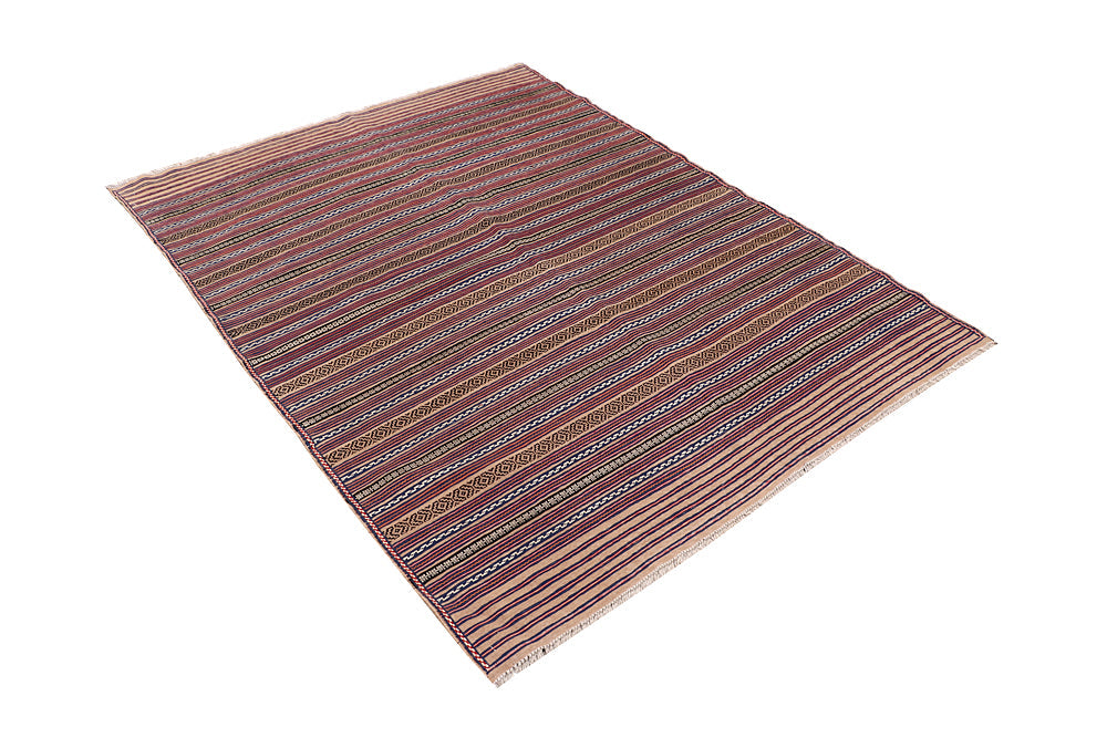 The Laghari Soumak Rug stands out with its unique flat-weave designs and raised embroidery-like patterns. It is woven by skilled hands using locally high-quality sourced wool and natural dyes. It combines durability with striking texture. Unlike traditional pile rugs, the Soumak offers a tapestry-like finish that adds depth and character to any room.