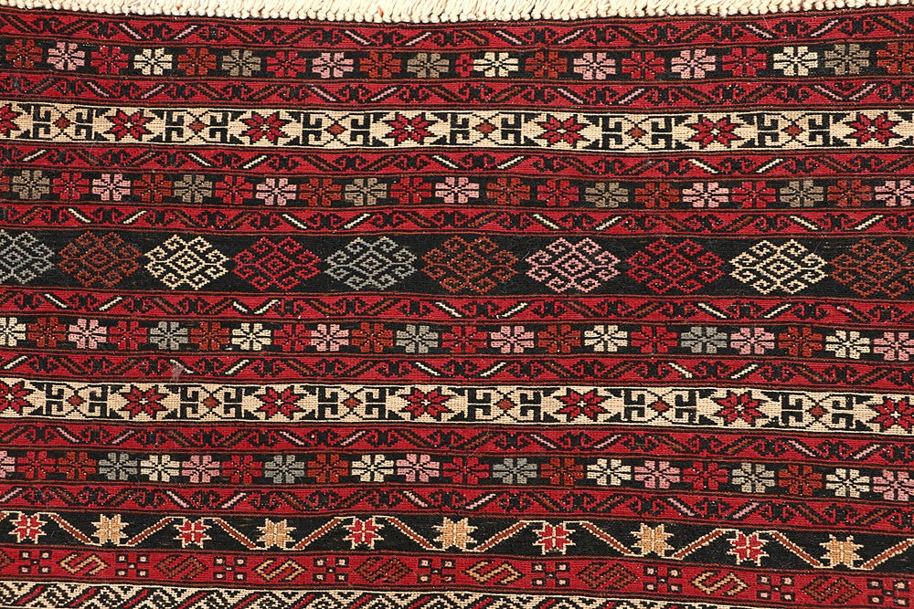 The Biljik Maliki rug blends bold colors with symmetrical geometric patterns. These rugs are handwoven with premium wool and offer a luxurious texture and a striking visual appeal.