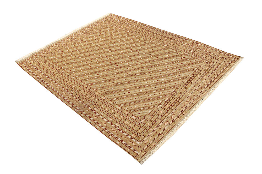 The Biljik Maliki rug blends bold colors with symmetrical geometric patterns. These rugs are handwoven with premium wool and offer a luxurious texture and a striking visual appeal.