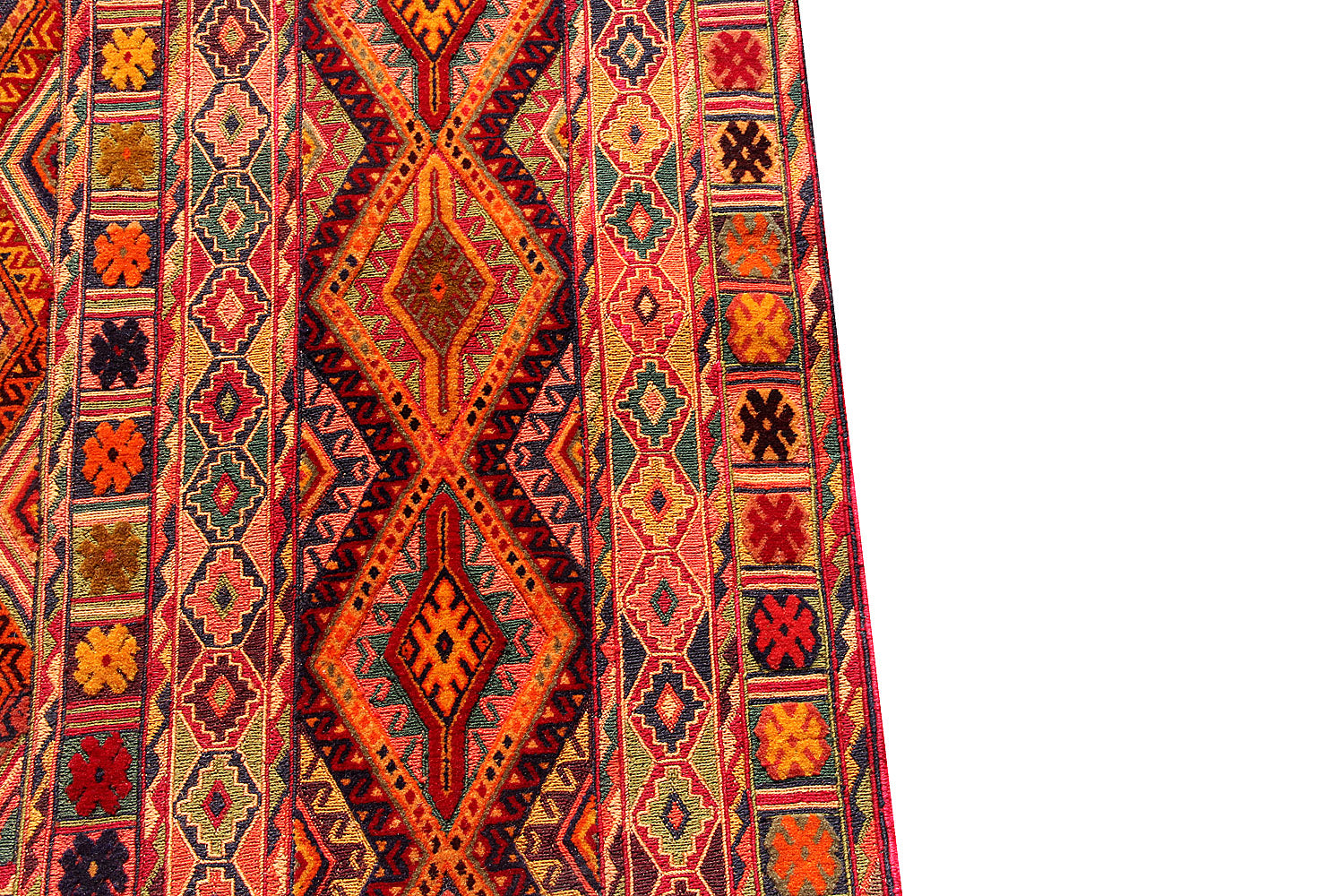 The Biljik Daizangi rug features striking geometric patterns in bold, contrasting hues. Its dense, high-quality wool weave ensures longevity and elegance. This rug’s modern appeal, combined with traditional craftsmanship, makes it a versatile addition to contemporary or transitional interiors.