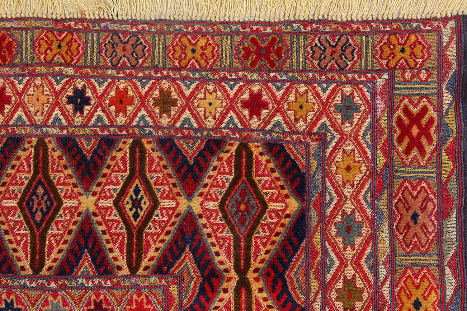 The Biljik Daizangi rug features striking geometric patterns in bold, contrasting hues. Its dense, high-quality wool weave ensures longevity and elegance. This rug’s modern appeal, combined with traditional craftsmanship, makes it a versatile addition to contemporary or transitional interiors.