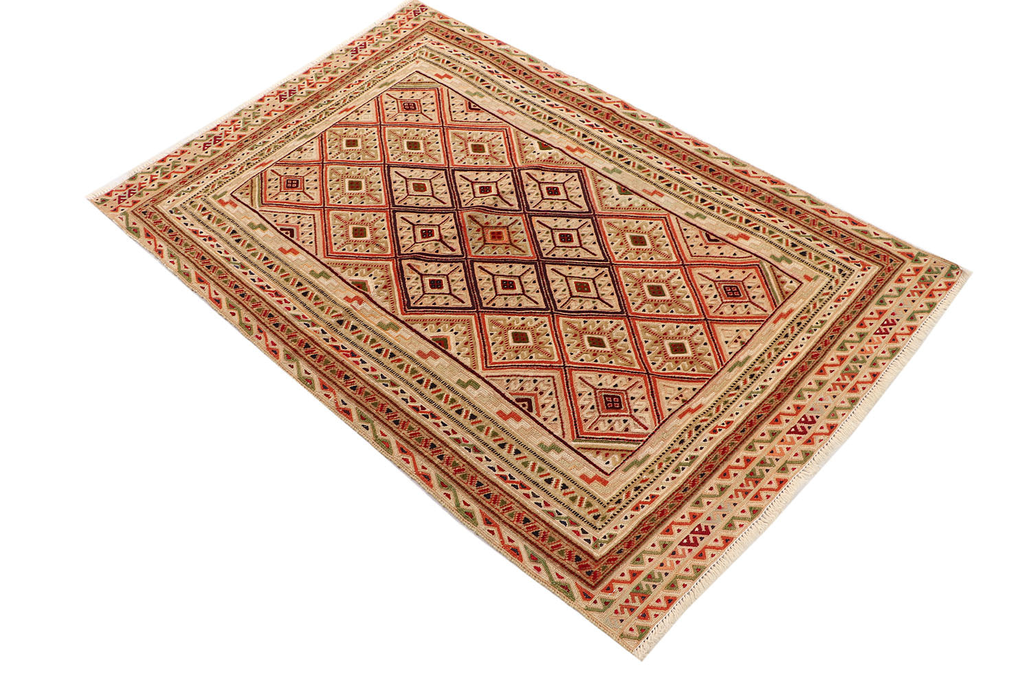 The Nakhunak Rug whispers tales of tradition with its labyrinthine, mosaic-like designs and soft, wool. Indigenous artisans wove it with sophistication and its delicate patterns dance in earthy tones, bringing warmth and charm to any space. Lightweight yet enduring, the Nakhunak is a piece of poetry crafted thread by thread.