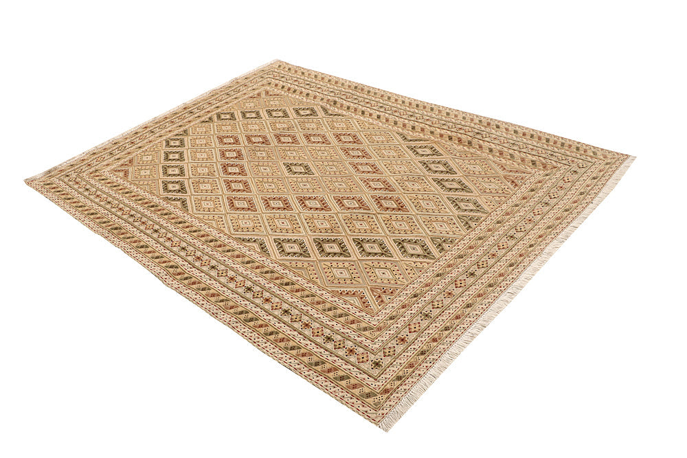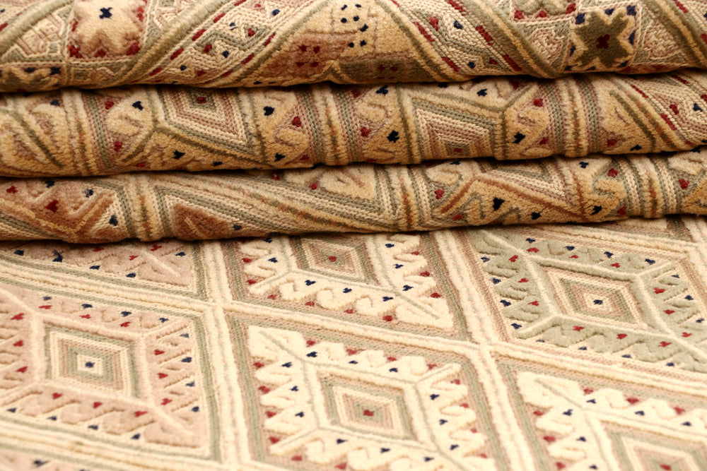 The Nakhunak Rug whispers tales of tradition with its labyrinthine, mosaic-like designs and soft, wool. Indigenous artisans wove it with sophistication and its delicate patterns dance in earthy tones, bringing warmth and charm to any space. Lightweight yet enduring, the Nakhunak is a piece of poetry crafted thread by thread.