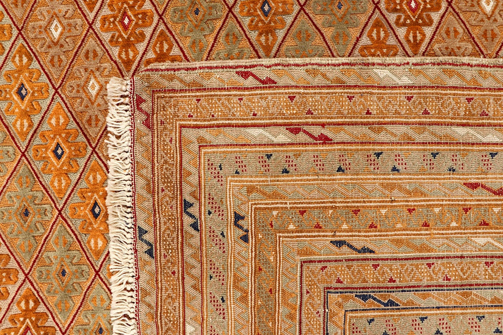 The Nakhunak Rug whispers tales of tradition with its labyrinthine, mosaic-like designs and soft, wool. Indigenous artisans wove it with sophistication and its delicate patterns dance in earthy tones, bringing warmth and charm to any space. Lightweight yet enduring, the Nakhunak is a piece of poetry crafted thread by thread.