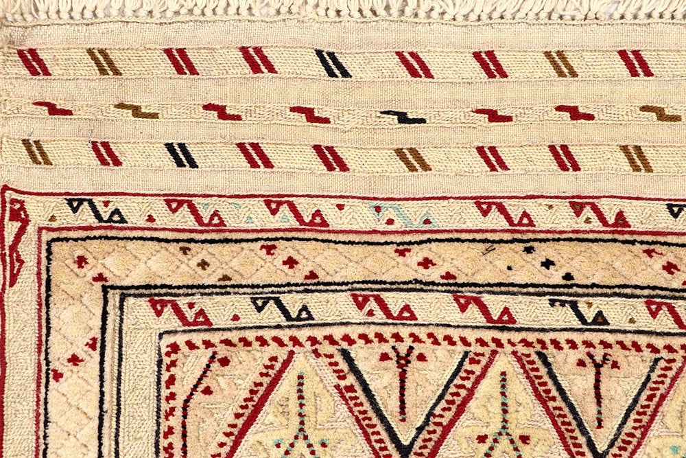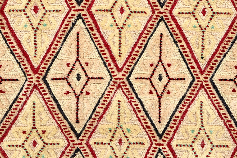 The Nakhunak Rug whispers tales of tradition with its labyrinthine, mosaic-like designs and soft, wool. Indigenous artisans wove it with sophistication and its delicate patterns dance in earthy tones, bringing warmth and charm to any space. Lightweight yet enduring, the Nakhunak is a piece of poetry crafted thread by thread.