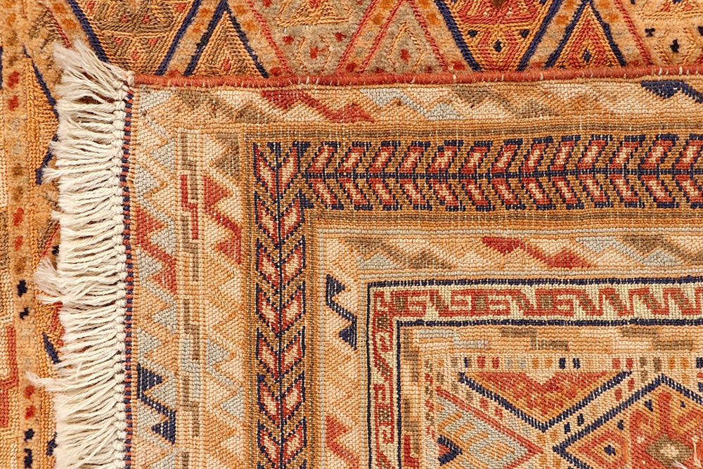 The Nakhunak Rug whispers tales of tradition with its labyrinthine, mosaic-like designs and soft, wool. Indigenous artisans wove it with sophistication and its delicate patterns dance in earthy tones, bringing warmth and charm to any space. Lightweight yet enduring, the Nakhunak is a piece of poetry crafted thread by thread.