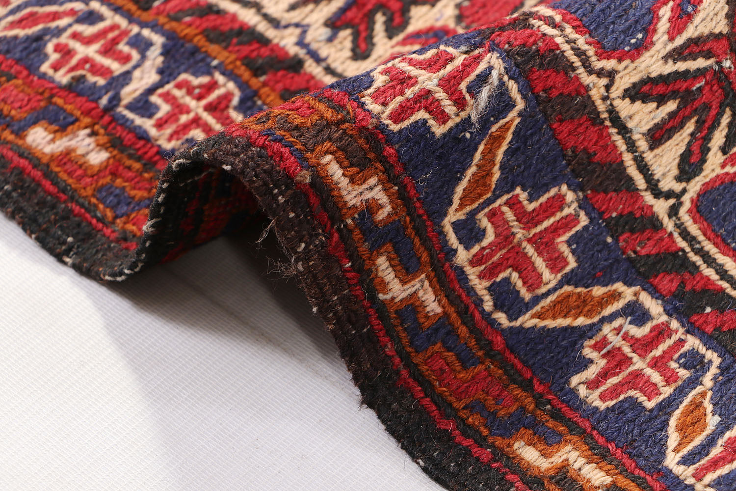 The Kalainow rug features complex tribal designs in warm, earthy tones. Its handwoven craftsmanship reflects traditional artistry while fitting seamlessly into modern homes.