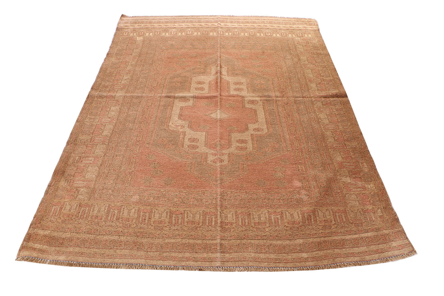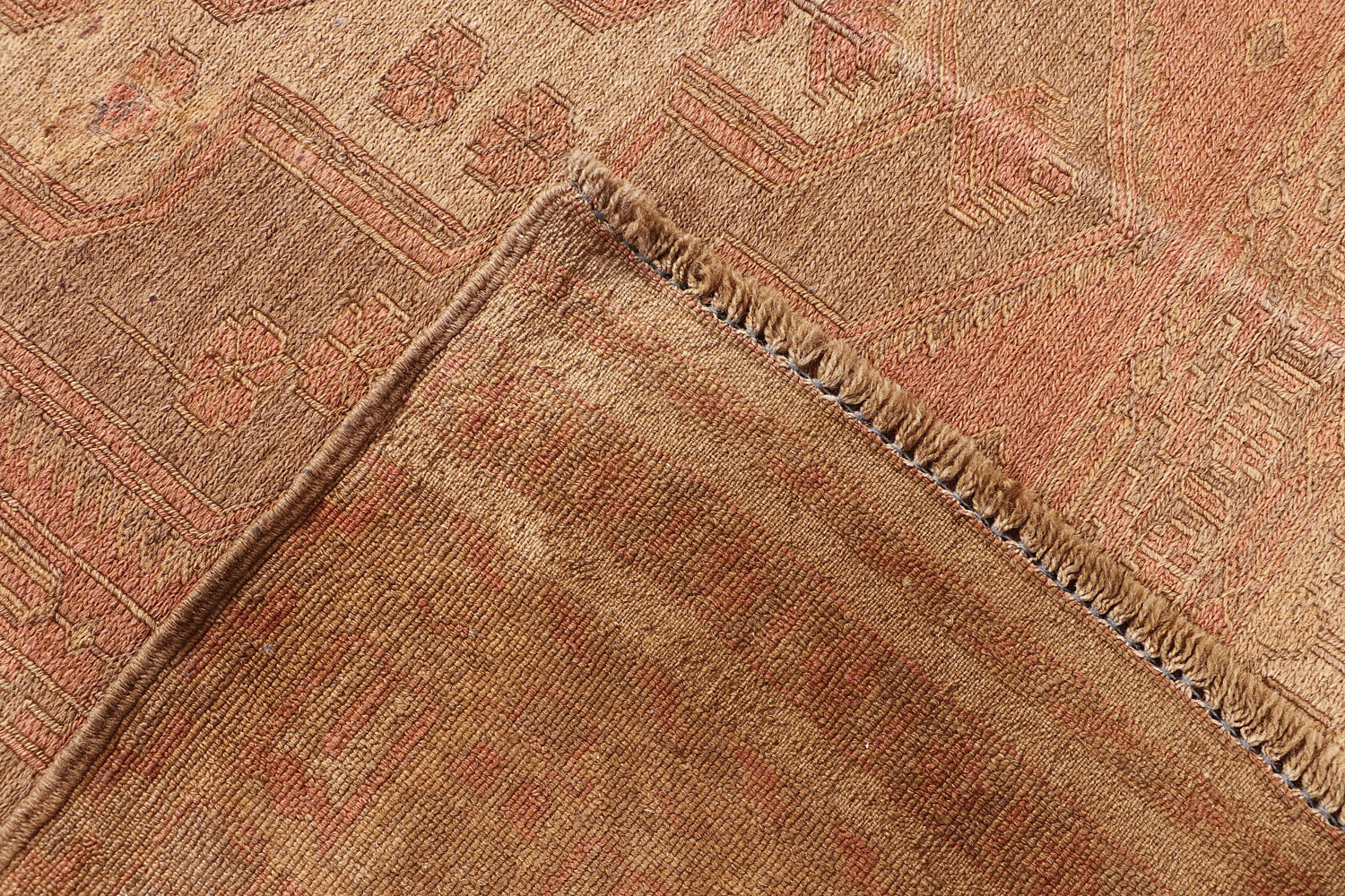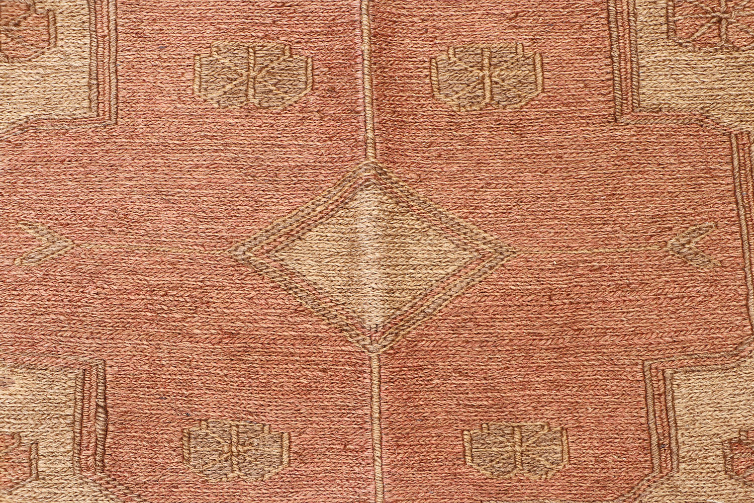 The Kalainow rug features complex tribal designs in warm, earthy tones. Its handwoven craftsmanship reflects traditional artistry while fitting seamlessly into modern homes.