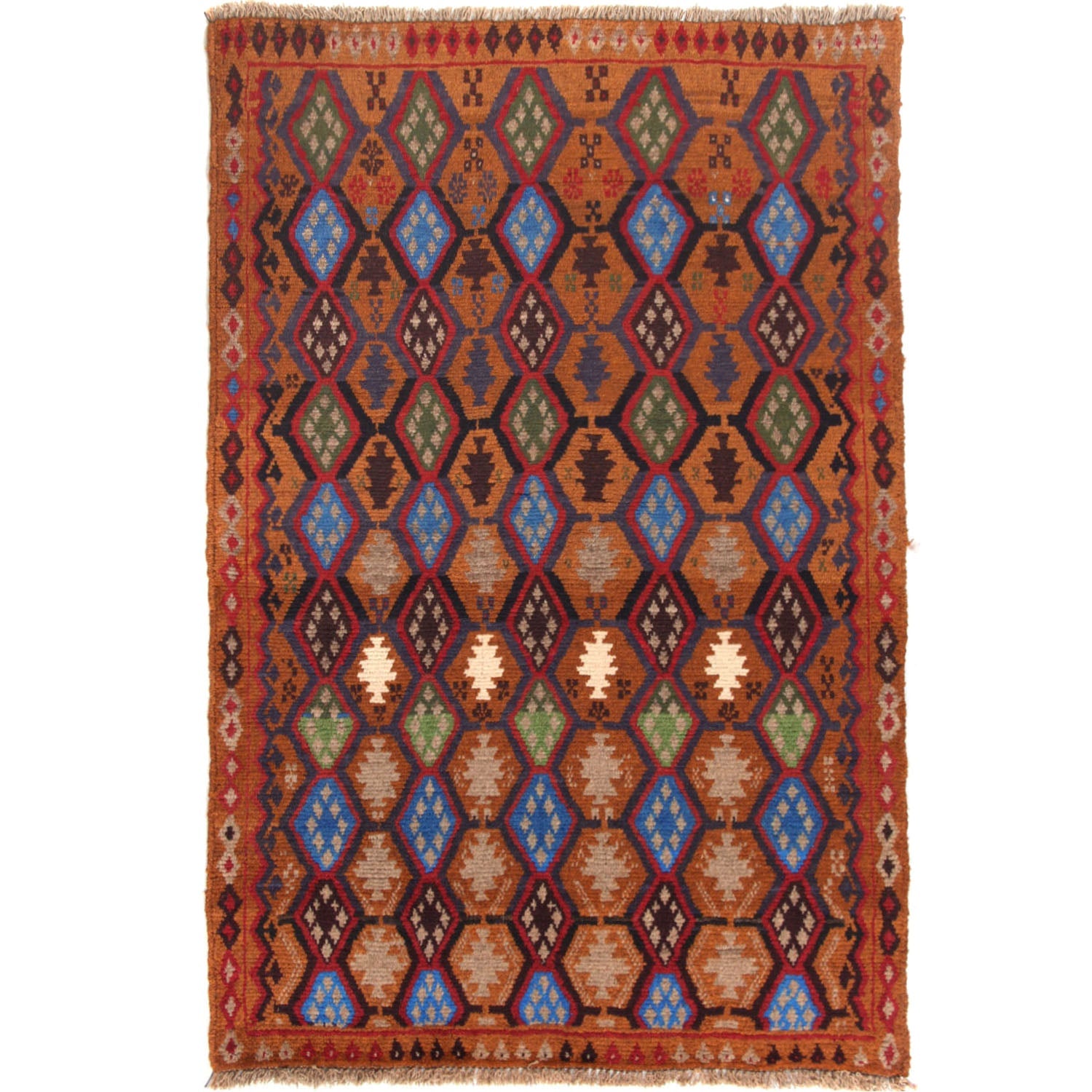 The Kohistani Baluchi rug showcases the artistry of tribal weavers with its earthy tones and dynamic, free-flowing designs. Made from natural wool, it reflects the culture and heritage of the Kohistani tribes. Its rugged charm and authentic craftsmanship make it perfect for rustic and eclectic interiors.