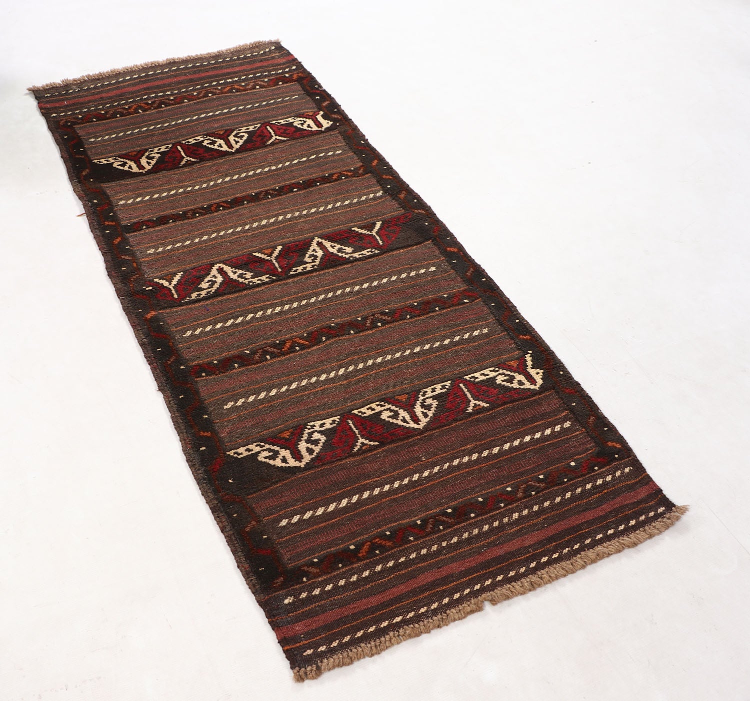 The Sufra rug, traditionally used as a multipurpose floor spread, combines durable flat-weave construction with simple, functional patterns. Its practical design fits perfectly in casual or utility spaces.