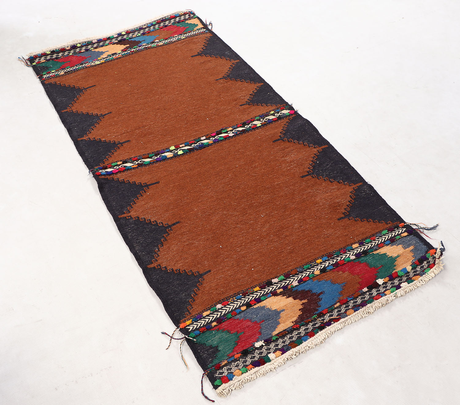 The Sufra rug, traditionally used as a multipurpose floor spread, combines durable flat-weave construction with simple, functional patterns. Its practical design fits perfectly in casual or utility spaces.