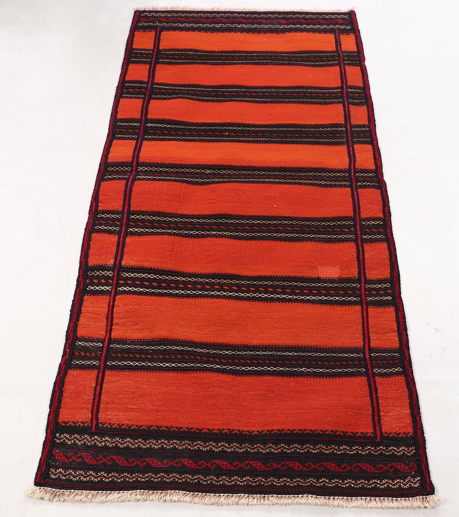 The Sufra rug, traditionally used as a multipurpose floor spread, combines durable flat-weave construction with simple, functional patterns. Its practical design fits perfectly in casual or utility spaces.
