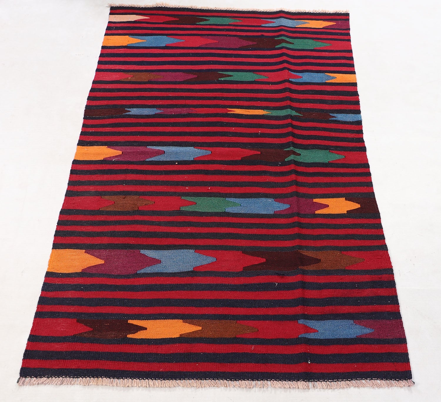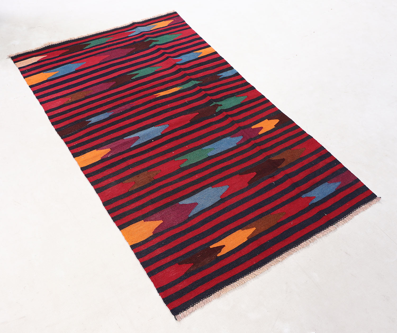 The Sufra rug, traditionally used as a multipurpose floor spread, combines durable flat-weave construction with simple, functional patterns. Its practical design fits perfectly in casual or utility spaces.