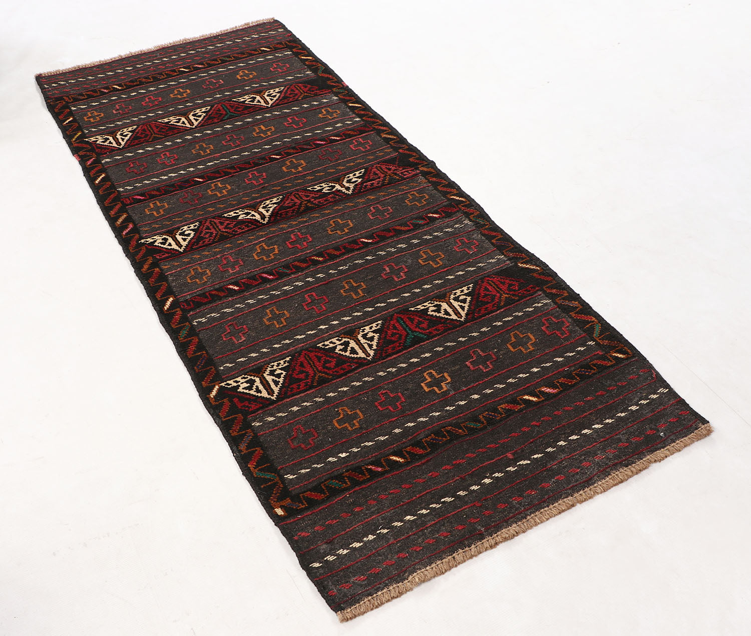 The Sufra rug, traditionally used as a multipurpose floor spread, combines durable flat-weave construction with simple, functional patterns. Its practical design fits perfectly in casual or utility spaces.