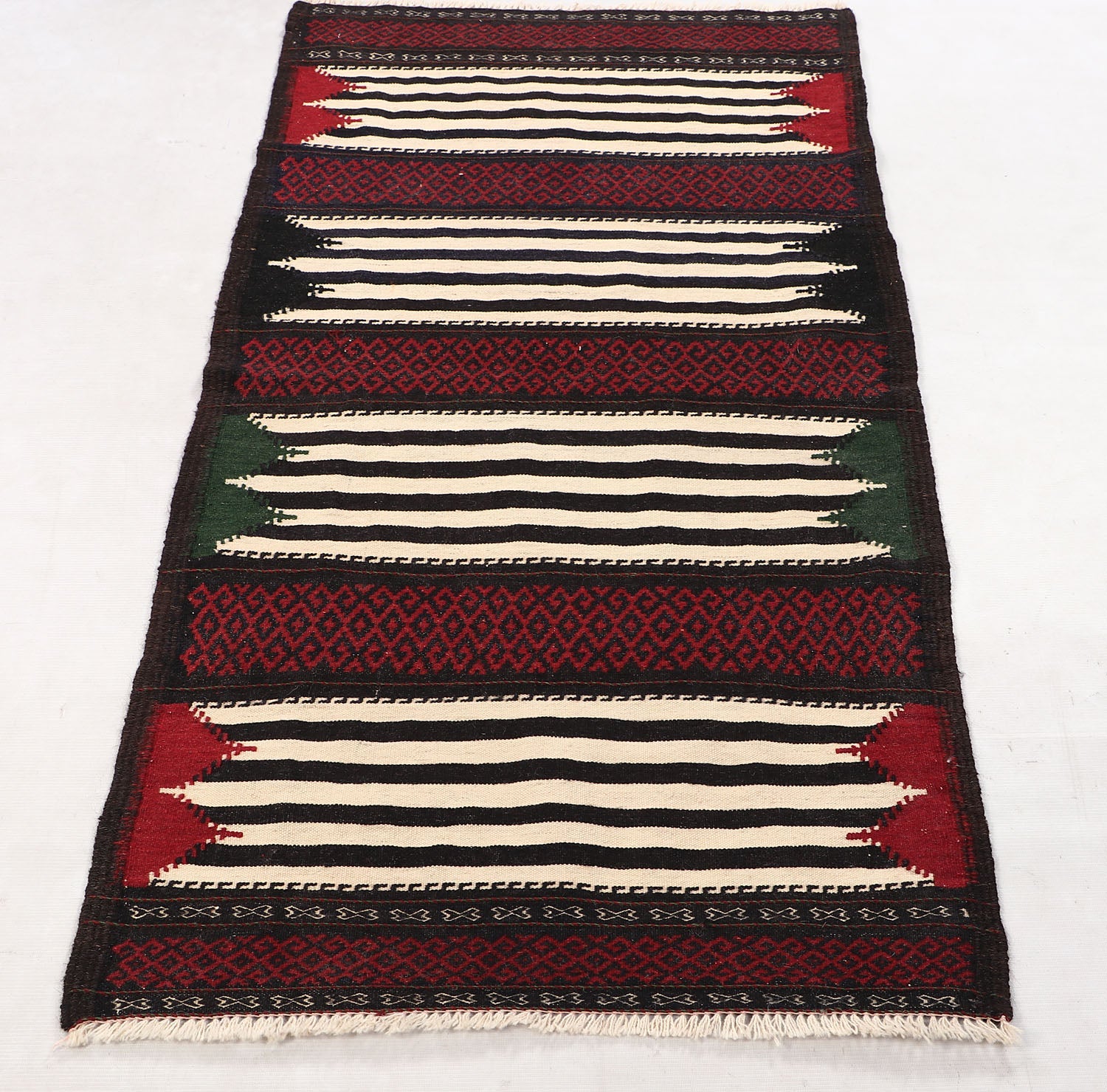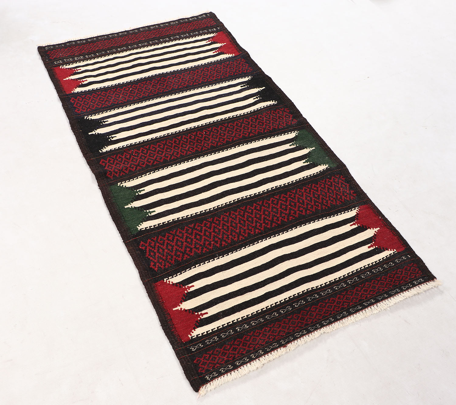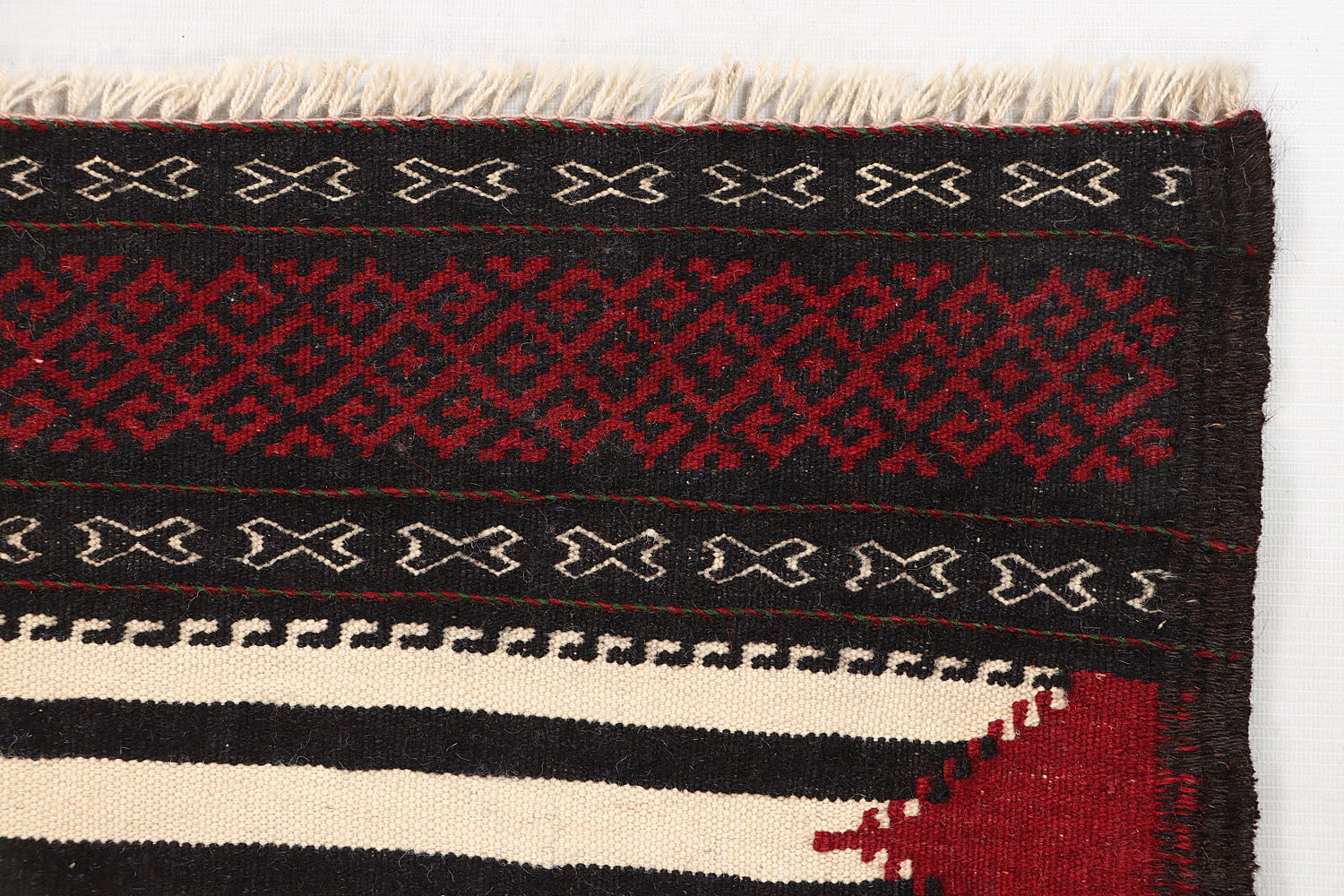The Sufra rug, traditionally used as a multipurpose floor spread, combines durable flat-weave construction with simple, functional patterns. Its practical design fits perfectly in casual or utility spaces.