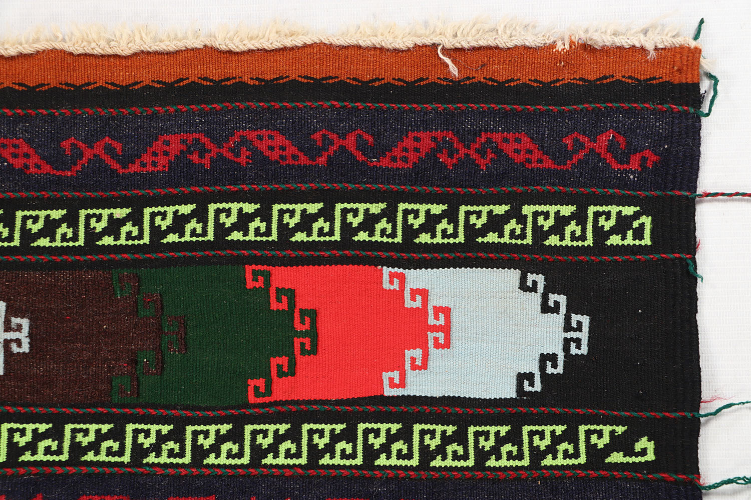 The Sufra rug, traditionally used as a multipurpose floor spread, combines durable flat-weave construction with simple, functional patterns. Its practical design fits perfectly in casual or utility spaces.