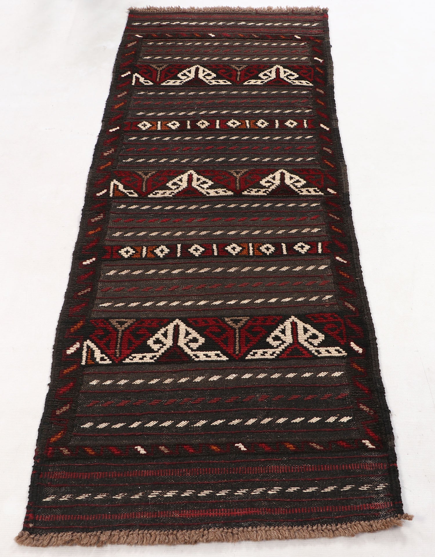 The Sufra rug, traditionally used as a multipurpose floor spread, combines durable flat-weave construction with simple, functional patterns. Its practical design fits perfectly in casual or utility spaces.