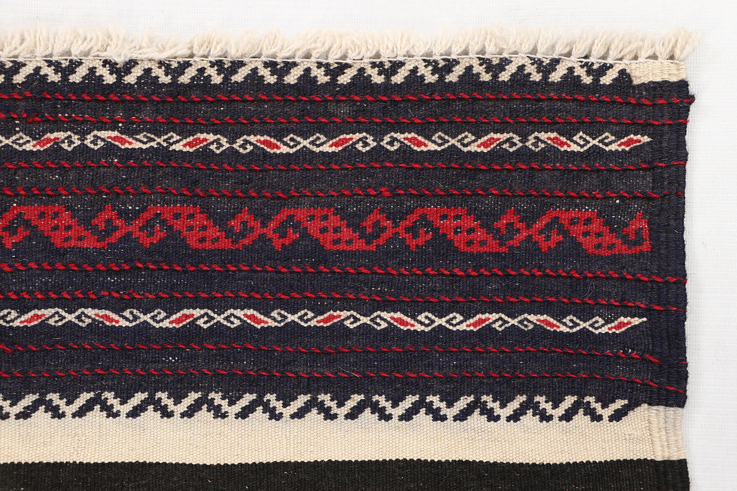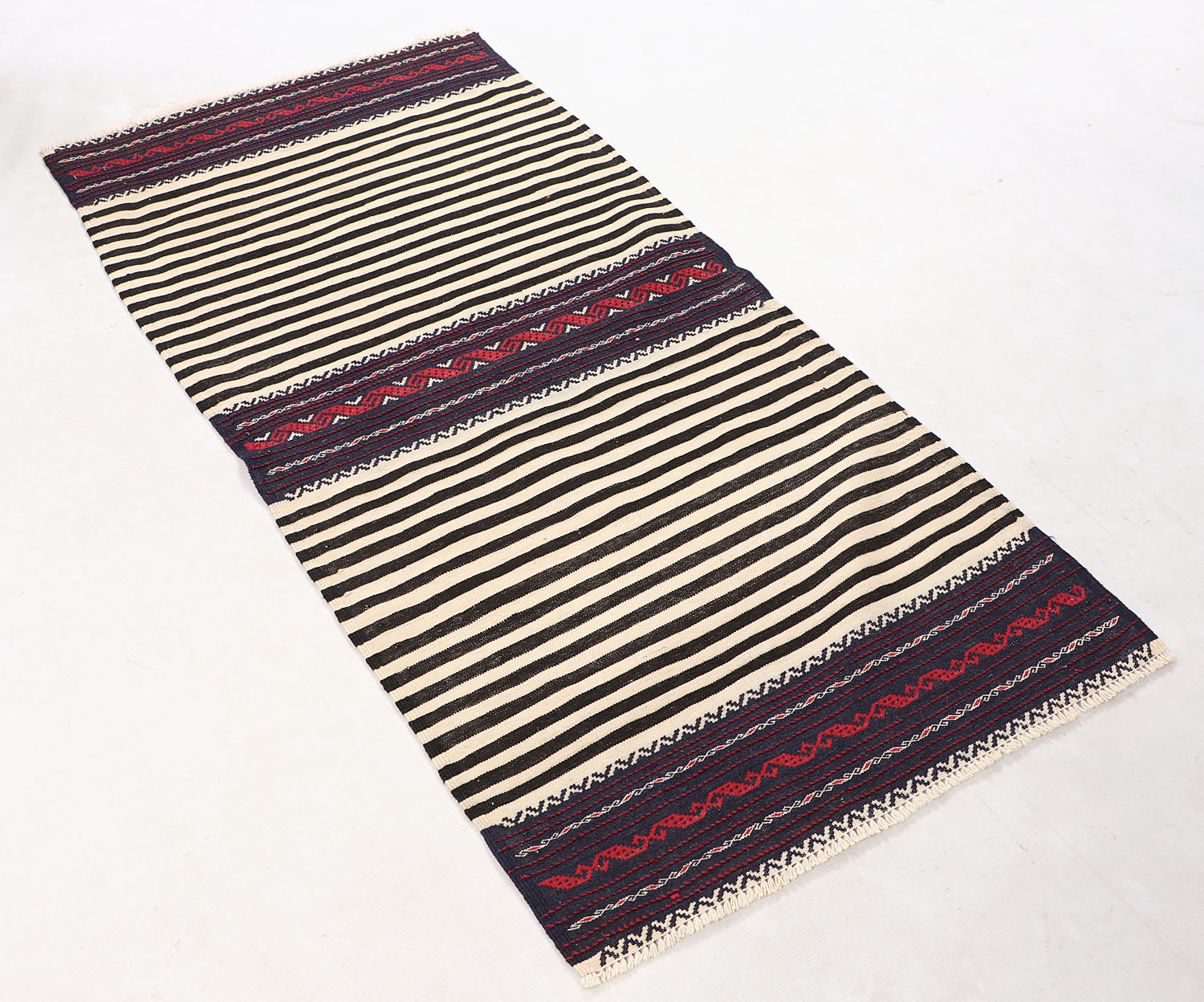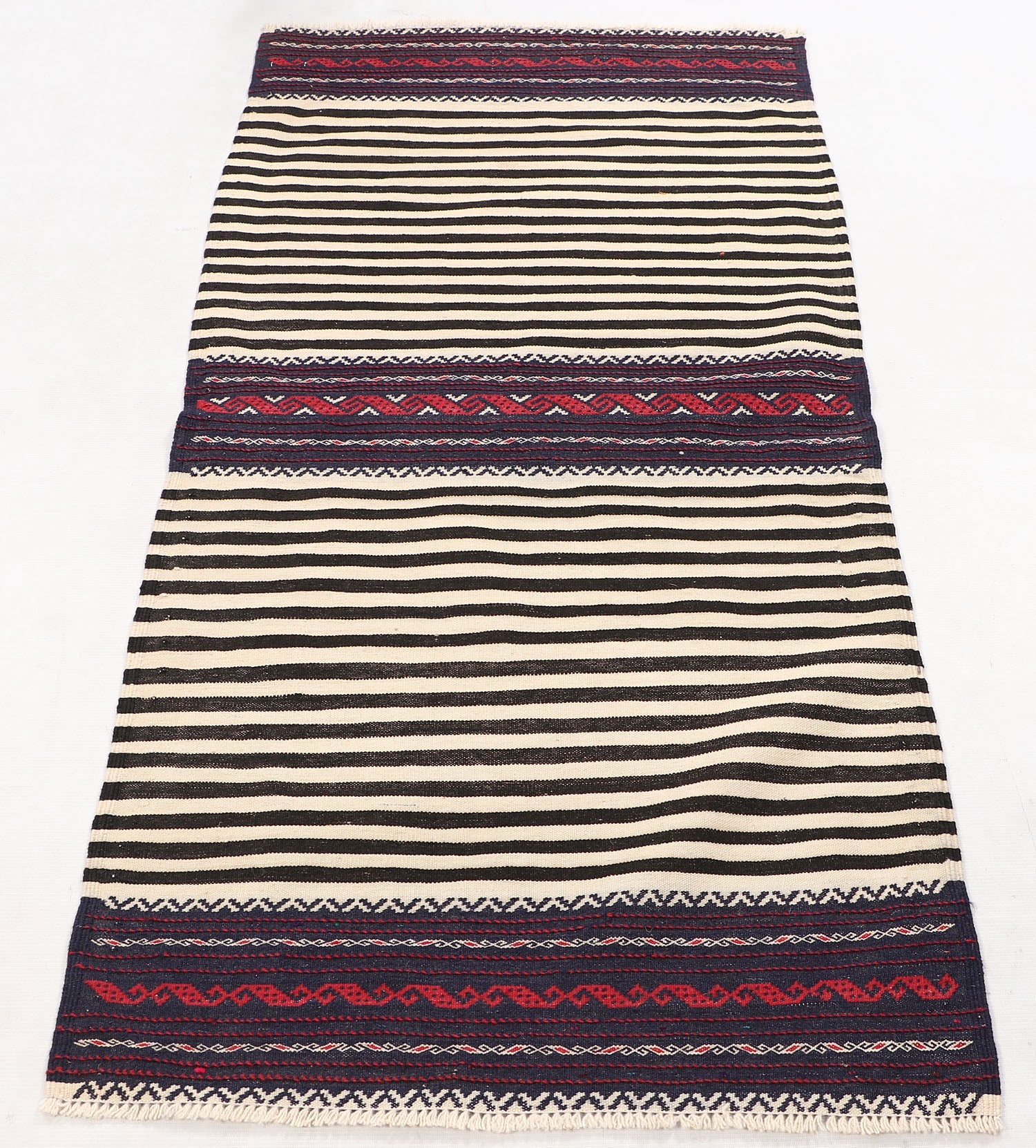 The Sufra rug, traditionally used as a multipurpose floor spread, combines durable flat-weave construction with simple, functional patterns. Its practical design fits perfectly in casual or utility spaces.