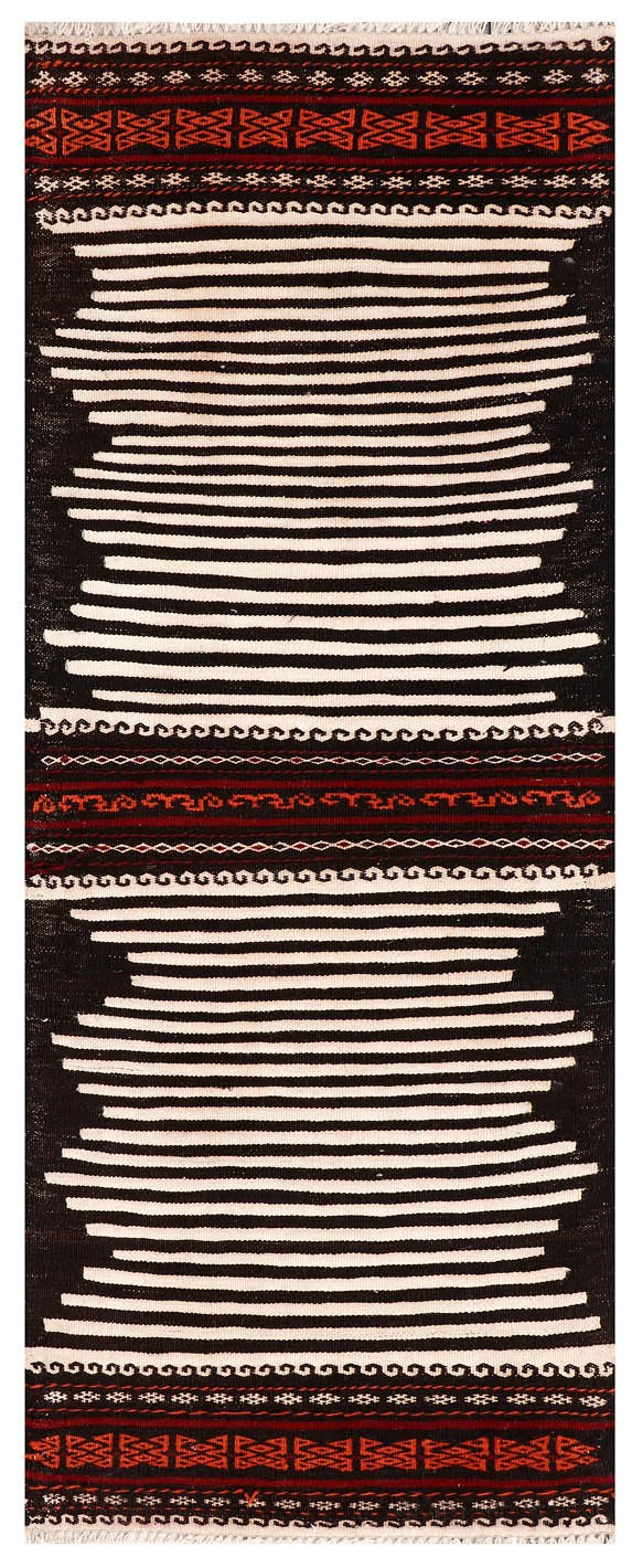 The Sufra rug, traditionally used as a multipurpose floor spread, combines durable flat-weave construction with simple, functional patterns. Its practical design fits perfectly in casual or utility spaces.