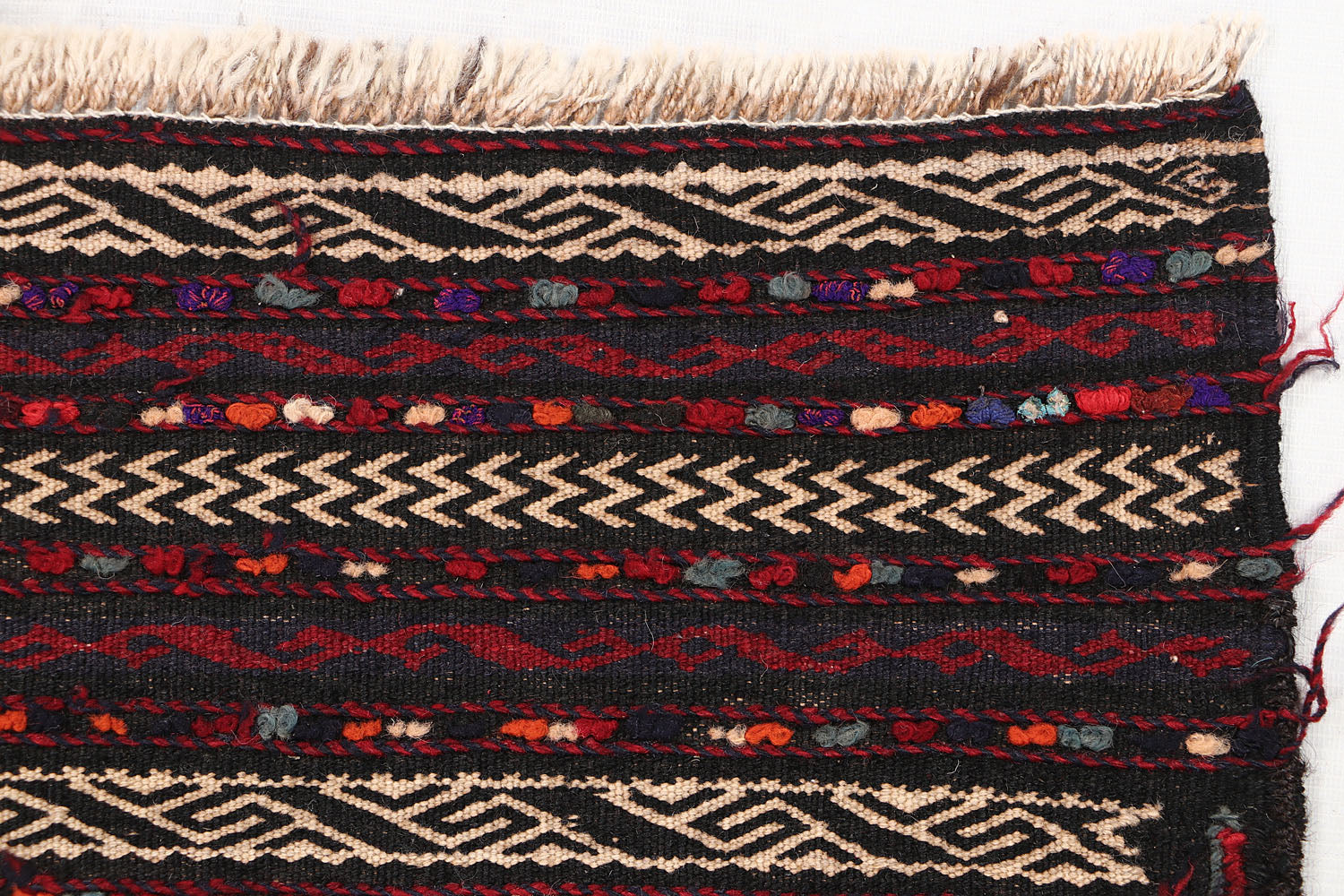 The Sufra rug, traditionally used as a multipurpose floor spread, combines durable flat-weave construction with simple, functional patterns. Its practical design fits perfectly in casual or utility spaces.