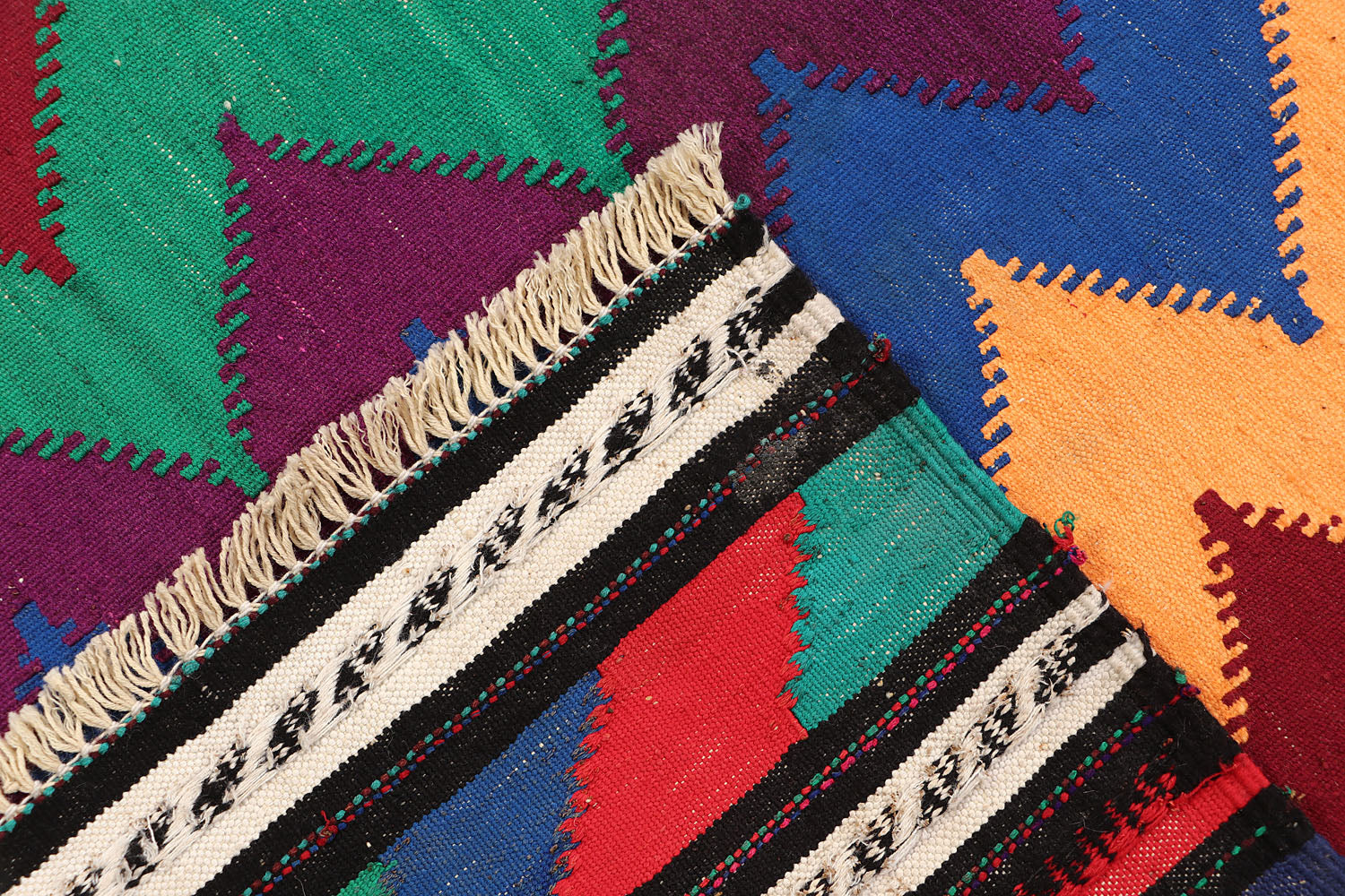 The Sufra rug, traditionally used as a multipurpose floor spread, combines durable flat-weave construction with simple, functional patterns. Its practical design fits perfectly in casual or utility spaces.
