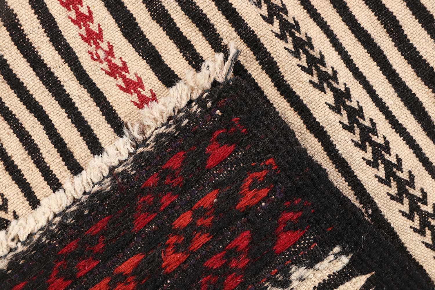 The Sufra rug, traditionally used as a multipurpose floor spread, combines durable flat-weave construction with simple, functional patterns. Its practical design fits perfectly in casual or utility spaces.