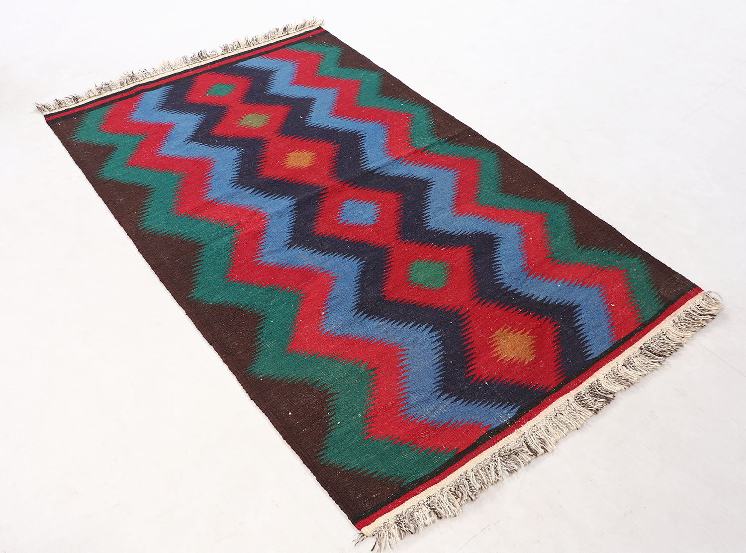 The Sufra rug, traditionally used as a multipurpose floor spread, combines durable flat-weave construction with simple, functional patterns. Its practical design fits perfectly in casual or utility spaces.