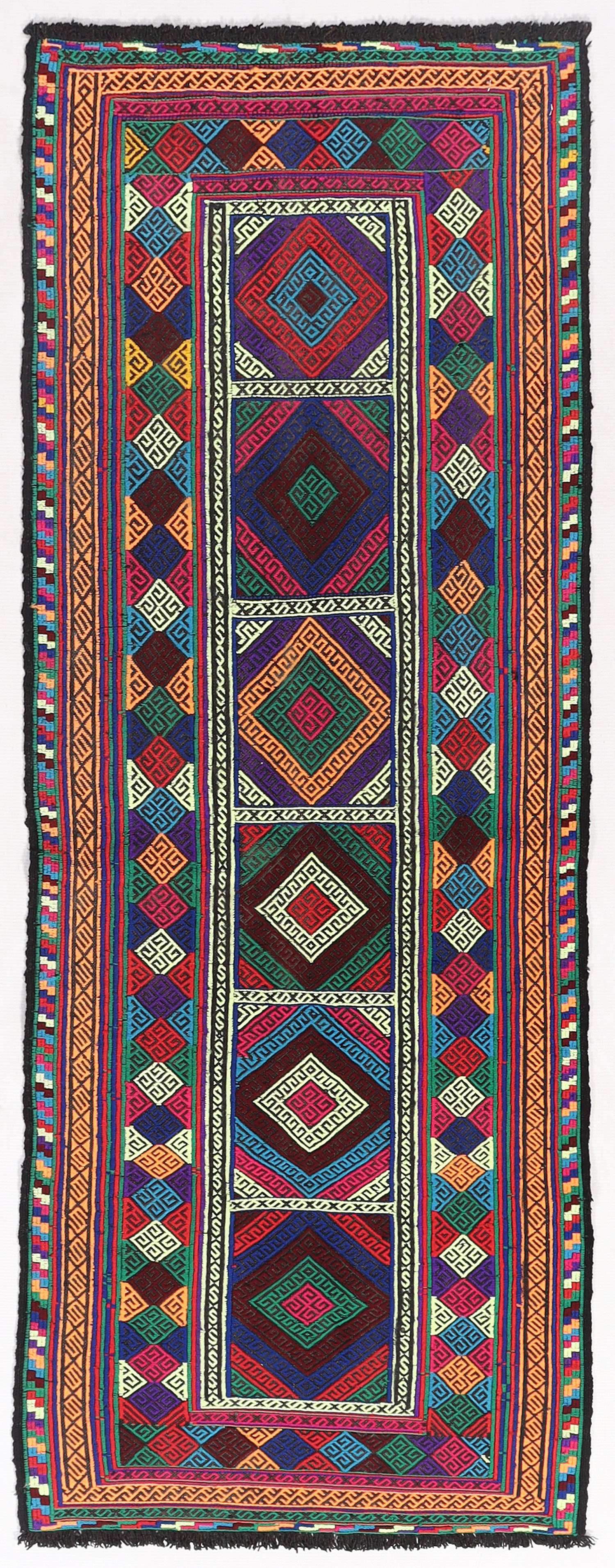 The Suzani Kilims are masterpieces of hand embroidery, featuring vibrant floral and tribal motifs. Their flat-weave construction and intricate detailing make them stunning wall hangings or floor pieces.