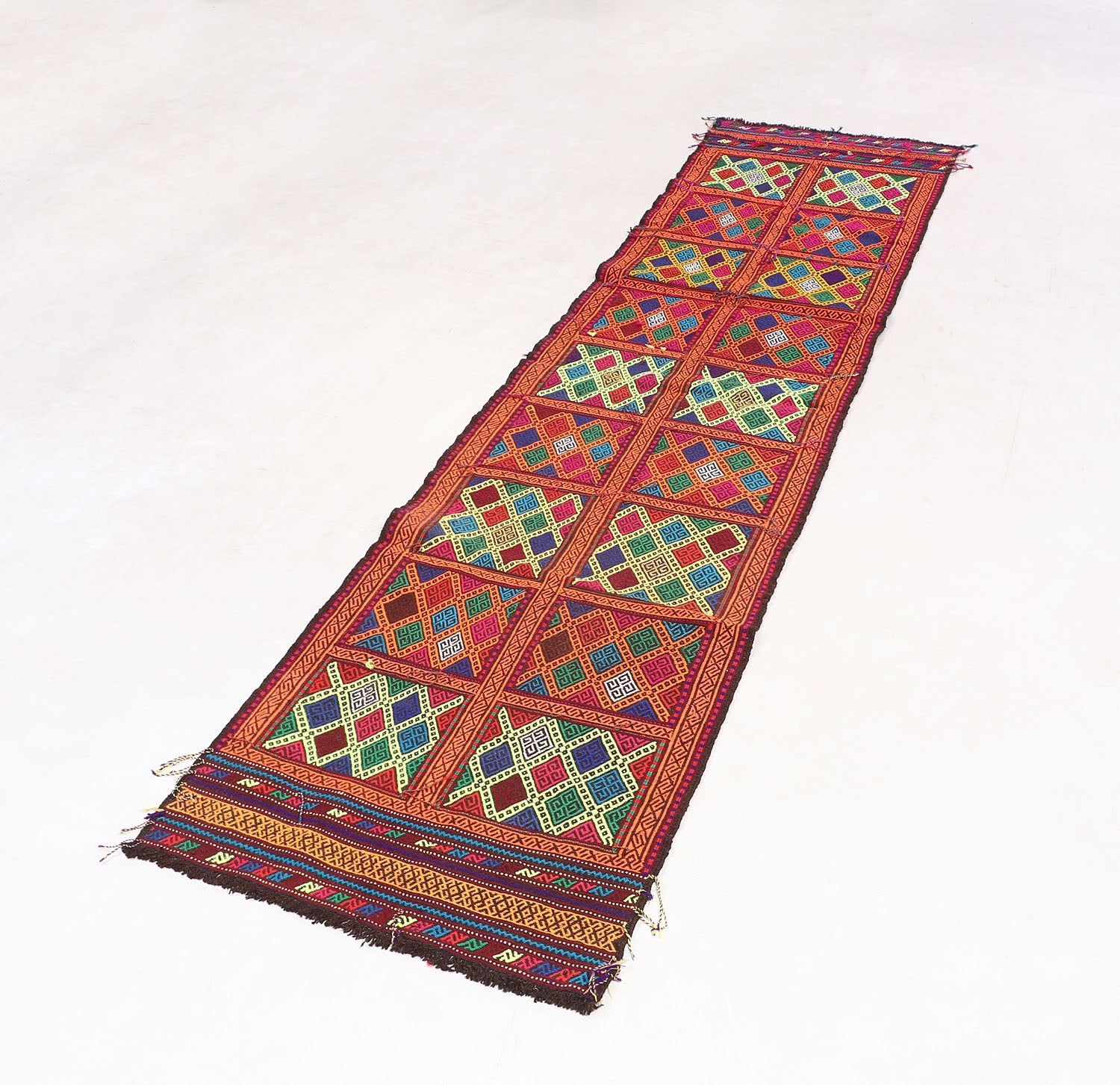The Suzani Kilims are masterpieces of hand embroidery, featuring vibrant floral and tribal motifs. Their flat-weave construction and intricate detailing make them stunning wall hangings or floor pieces.
