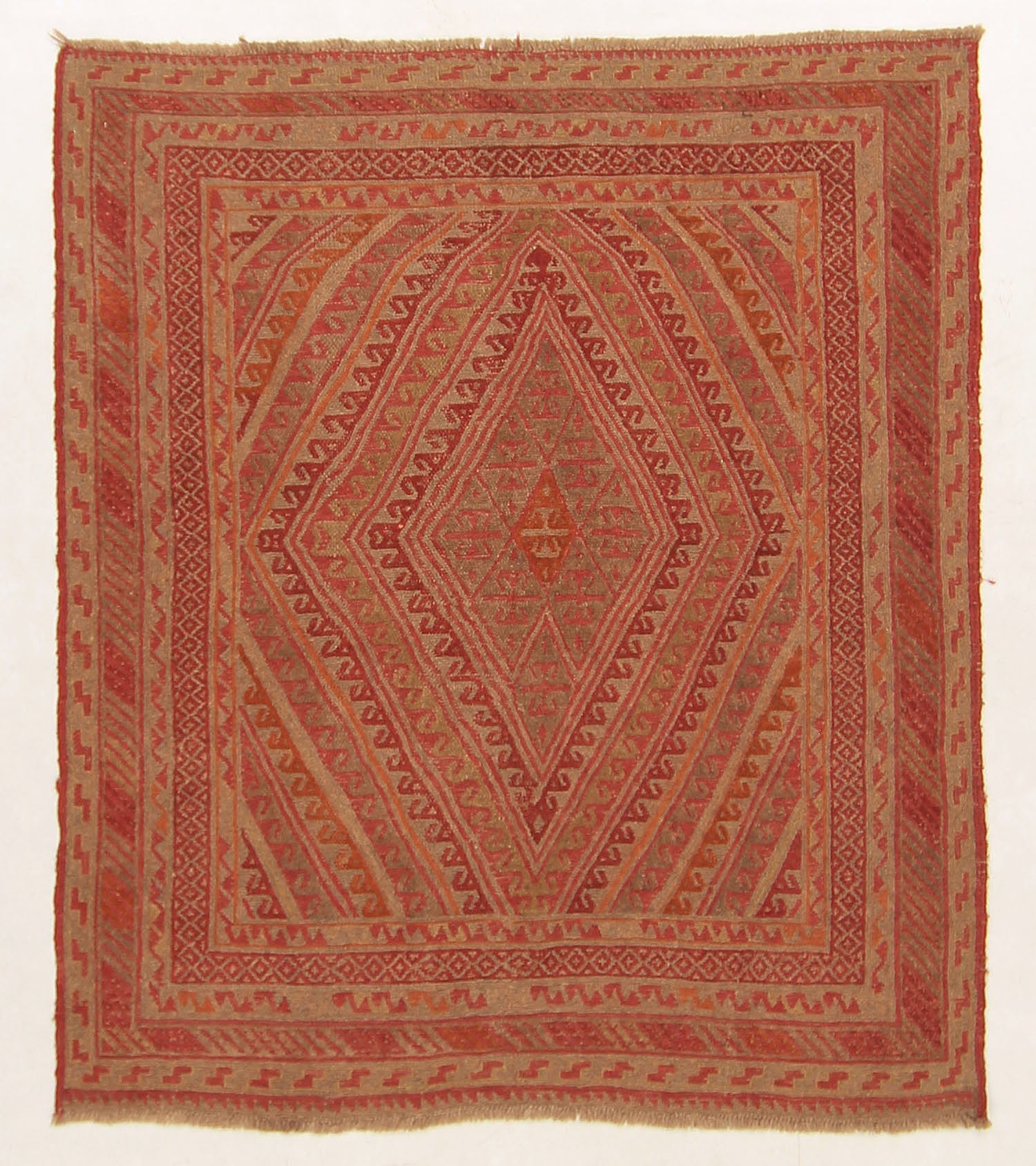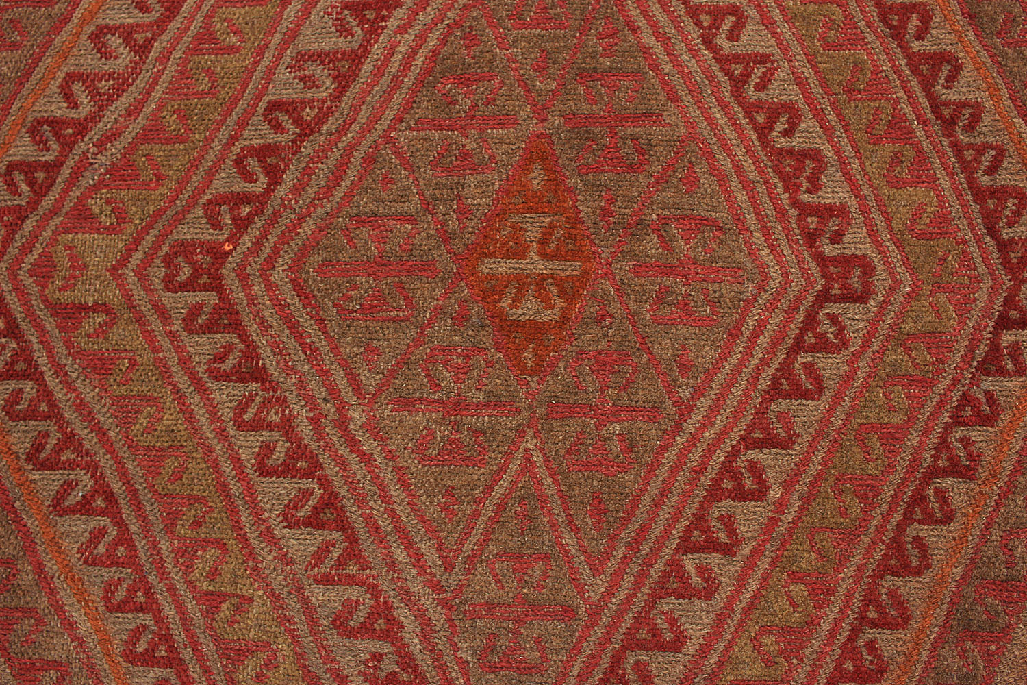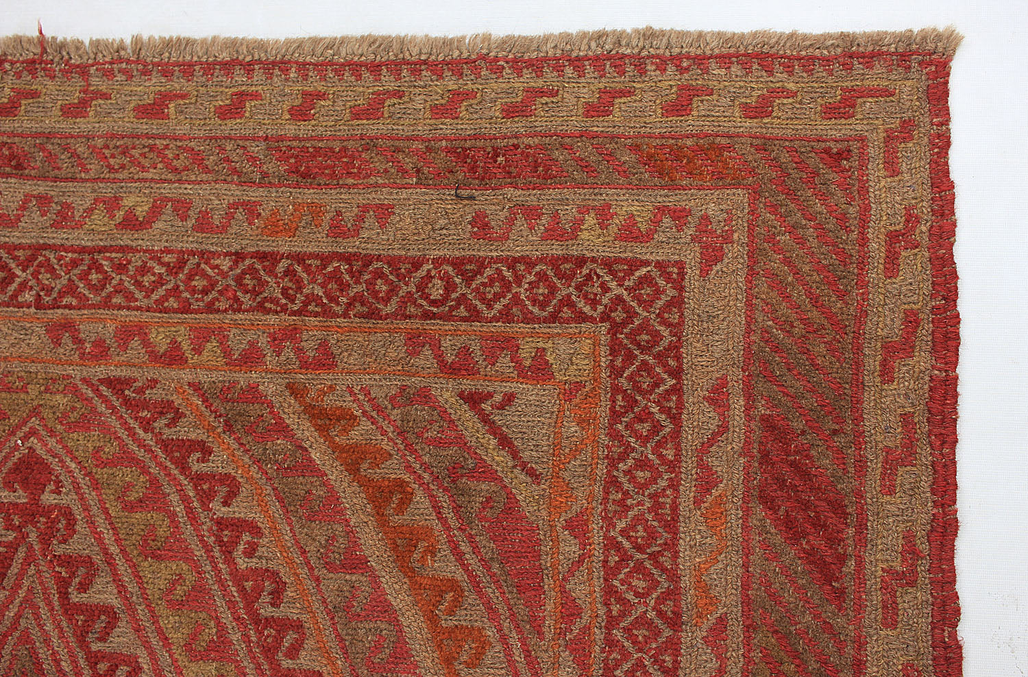 The Mashwani rug stands out with its bold geometric patterns and a combination of kilim and pile weaving techniques. Its vibrant colors and durable wool construction make it a versatile choice for various décor styles.