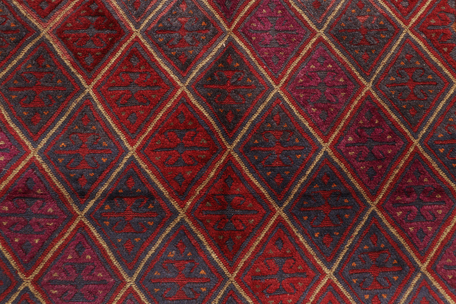The Mashwani rug stands out with its bold geometric patterns and a combination of kilim and pile weaving techniques. Its vibrant colors and durable wool construction make it a versatile choice for various décor styles.