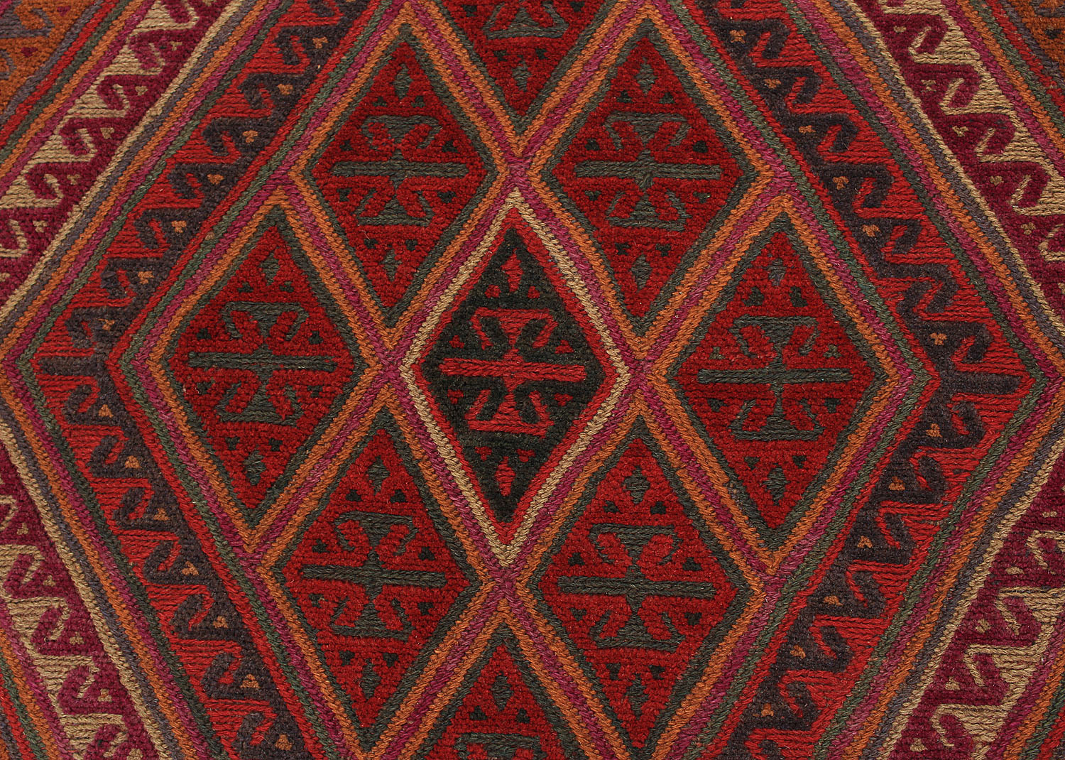 The Mashwani rug stands out with its bold geometric patterns and a combination of kilim and pile weaving techniques. Its vibrant colors and durable wool construction make it a versatile choice for various décor styles.