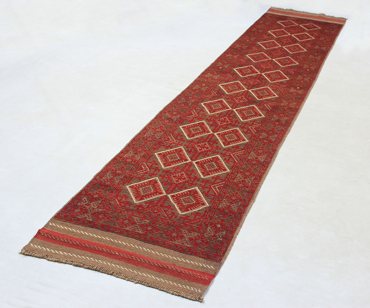 The Mashwani rug stands out with its bold geometric patterns and a combination of kilim and pile weaving techniques. Its vibrant colors and durable wool construction make it a versatile choice for various décor styles.