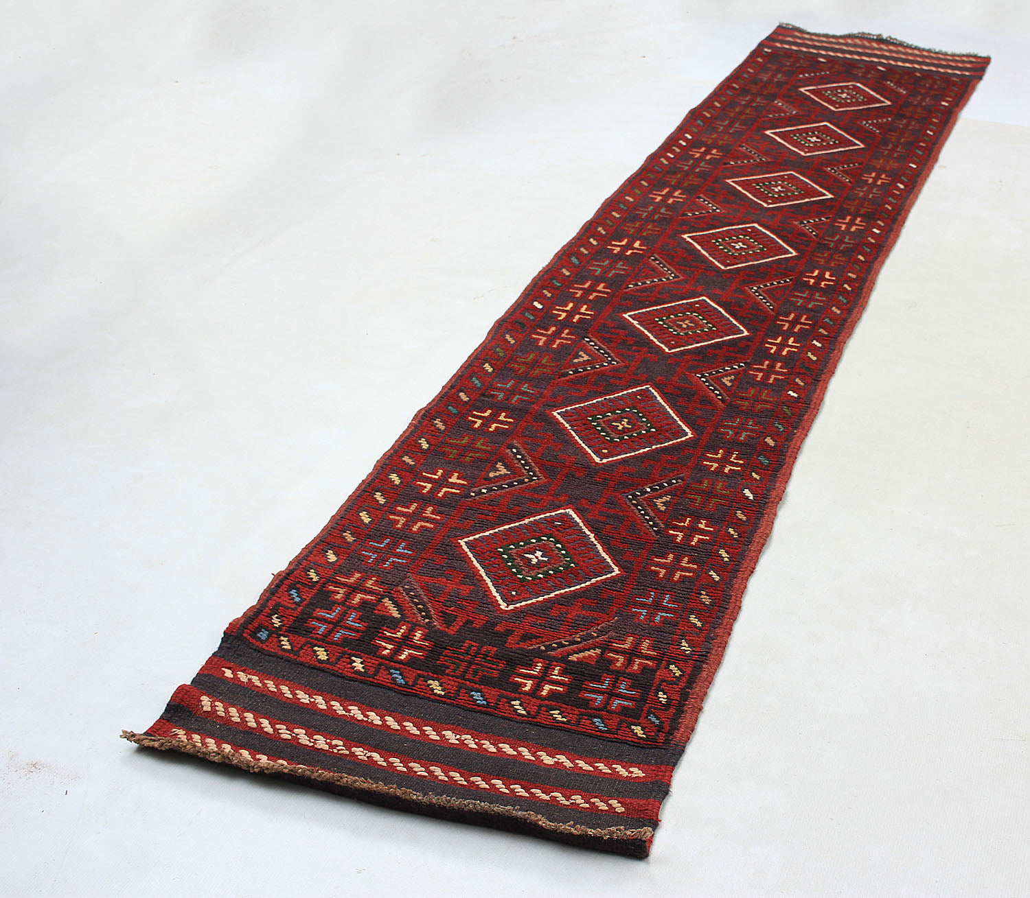The Mashwani rug stands out with its bold geometric patterns and a combination of kilim and pile weaving techniques. Its vibrant colors and durable wool construction make it a versatile choice for various décor styles.