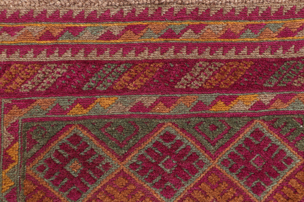The Mashwani rug stands out with its bold geometric patterns and a combination of kilim and pile weaving techniques. Its vibrant colors and durable wool construction make it a versatile choice for various décor styles.