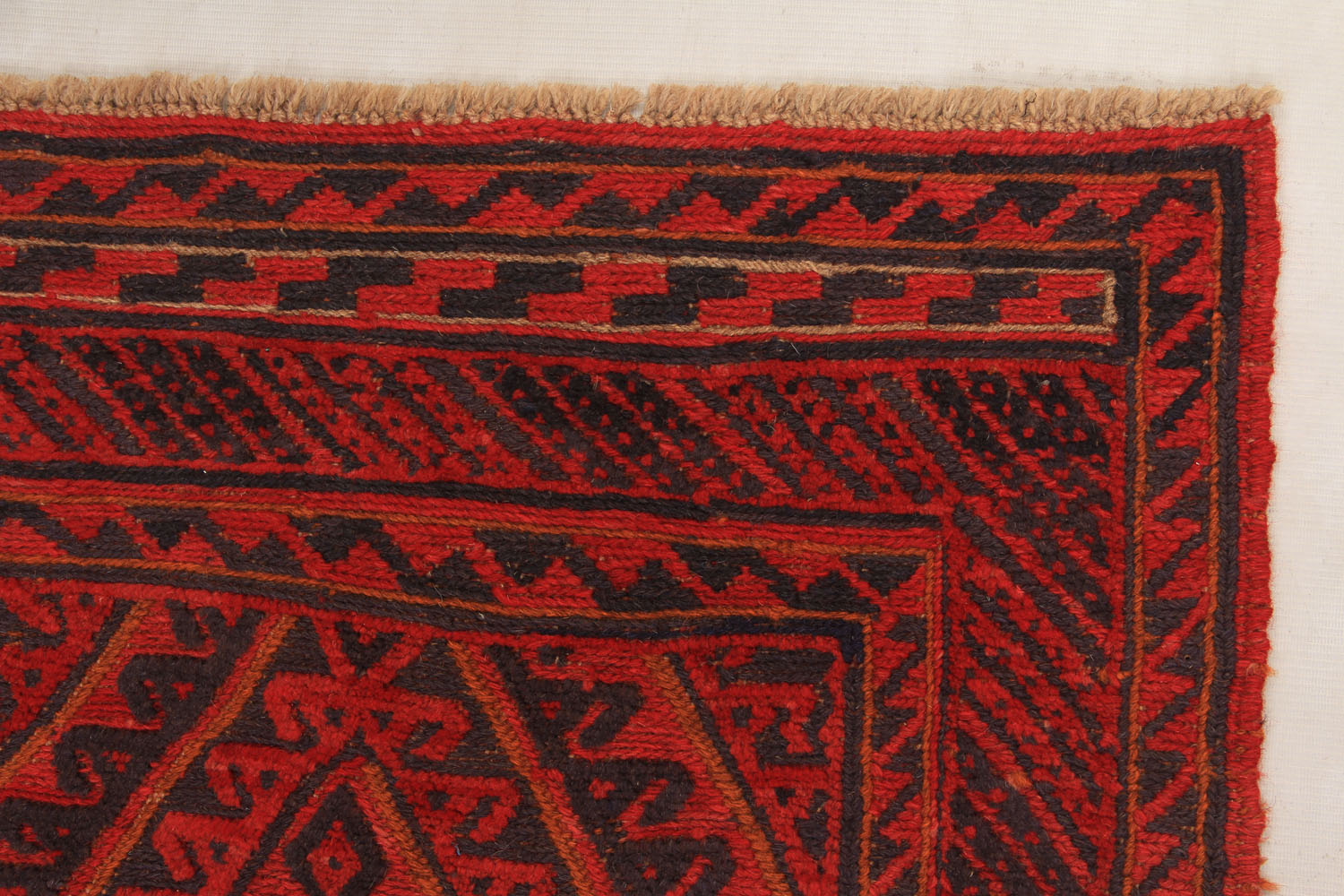 The Mashwani rug stands out with its bold geometric patterns and a combination of kilim and pile weaving techniques. Its vibrant colors and durable wool construction make it a versatile choice for various décor styles.