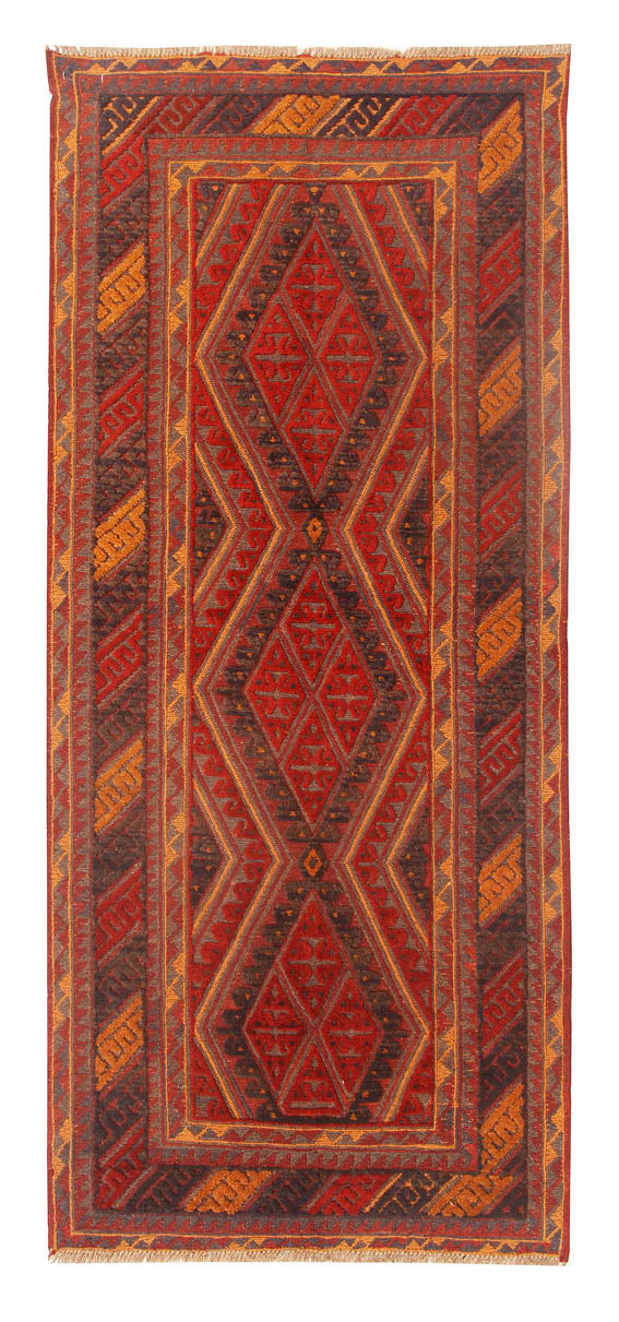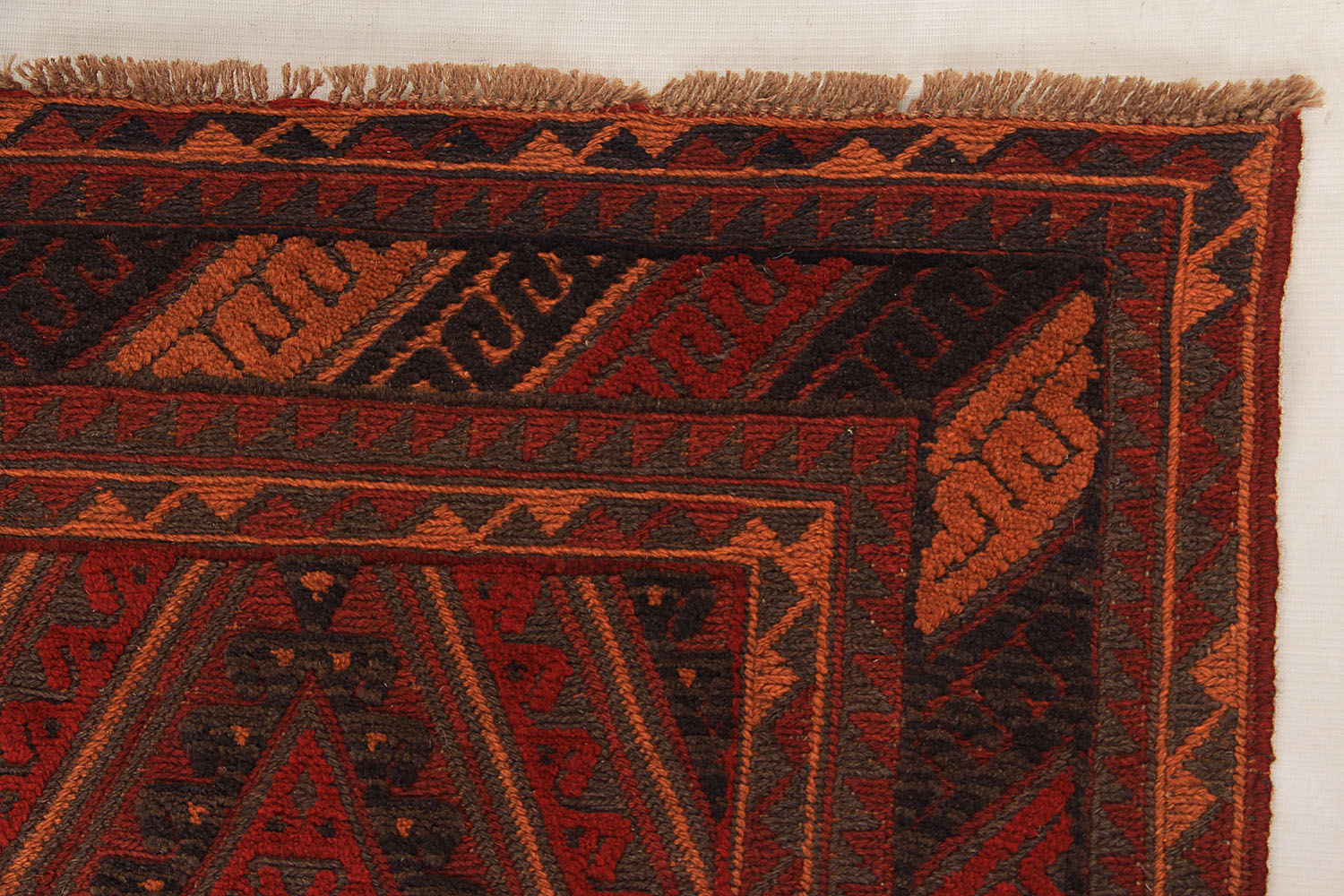 The Mashwani rug stands out with its bold geometric patterns and a combination of kilim and pile weaving techniques. Its vibrant colors and durable wool construction make it a versatile choice for various décor styles.