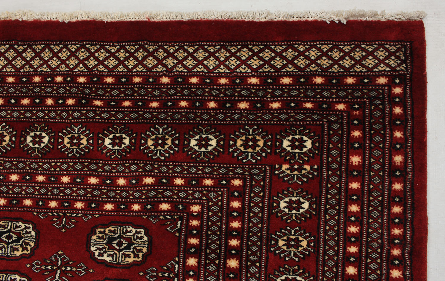 The Mori Bukhara rug is a luxurious piece known for its repeating octagonal gul motifs. Made from high-quality wool, it offers a soft, silky texture and a timeless aesthetic. This rug adds a sense of refinement and harmony to any space.